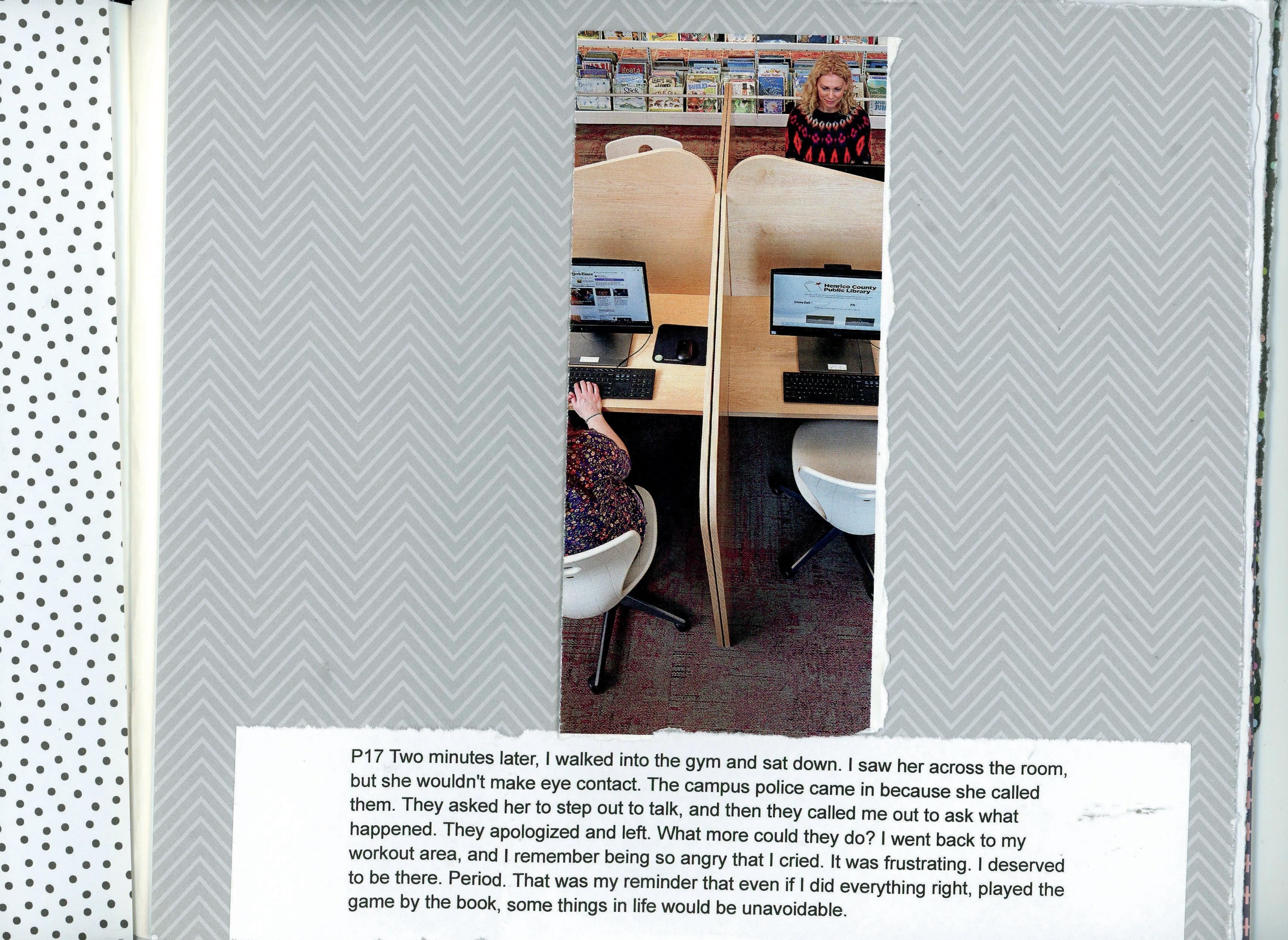 Two minutes later, I walked into the gym and sat down. I saw her across the room, but she wouldn't make eye contact. The campus police came in because she called them. They asked her to step out to talk, and then they called me out to ask what happened. They apologized and left. What more could they do? I went back to my workout area, and I remember being so angry that I cried. It was frustrating. I deserved to be there. Period. That was my reminder that even if I did everything right, played the game by the book, some things in life would be unavoidable.
