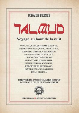 Talmud, voyage au bout de la nuit Rédacteur de Rivarol, Juda Le Prince a étudié scrupuleusement le judaïsme : plus de 30000 pages engouffrées ! Le résultat de ses recherches est consigné dans un ouvrage : Talmud, voyage au bout de la nuit. Si vous voulez mieux connaître ce formidable Talmud, son rejeton (la cabale), et sa cousine germaine musulmane (la sunna), ce livre est pour vous ; et pour mieux vous convaincre, venez écouter la conférence de Juda Le Prince qui vous dévoilera les meilleurs passages du Talmud que l’on s’escrime à vous dissimuler…
