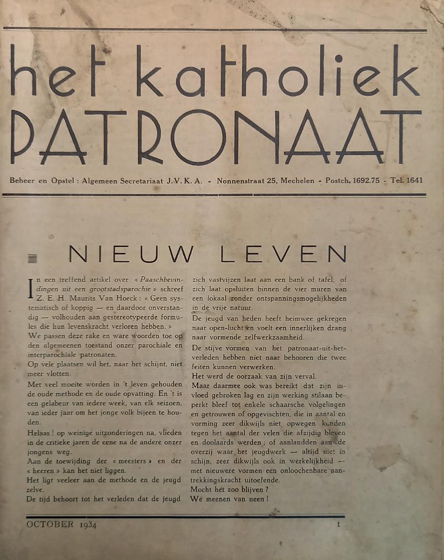 In oktober 1934 verschijnt het eerste nummer van het volledig vernieuwde tijdschrift ‘Het Katholiek Patronaat’. Daarin legt Eerwaarde Heer (E.H.)