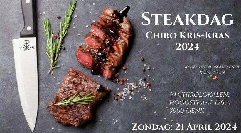 Op zondag 21 april organiseren we ook weer ons jaarlijks eetevenement met de leiding van Kris-Kras, waar jullie allemaal kunnen komen smullen! Op Steakdag kunnen jullie uiteraard genieten van een lekkere steak, maar ook van stoofvlees, videe, frikandellen en veggie burgers! We voorzien twee smulmomenten: ‘ s middags en ‘ s avonds Meer info volgt zeker nog, maar wie zich al wil inschrijven kan dat via de QR code of deze link. Vergeet zeker niet jullie familie, vrienden, buren en kennissen uit te nodigen!
