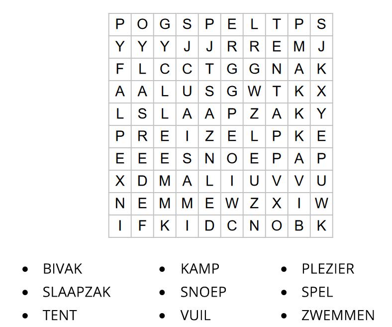 Om jullie al wat in de sfeer te brengen van ons kamp, kunnen jullie hieronder de woordzoeker oplossen
