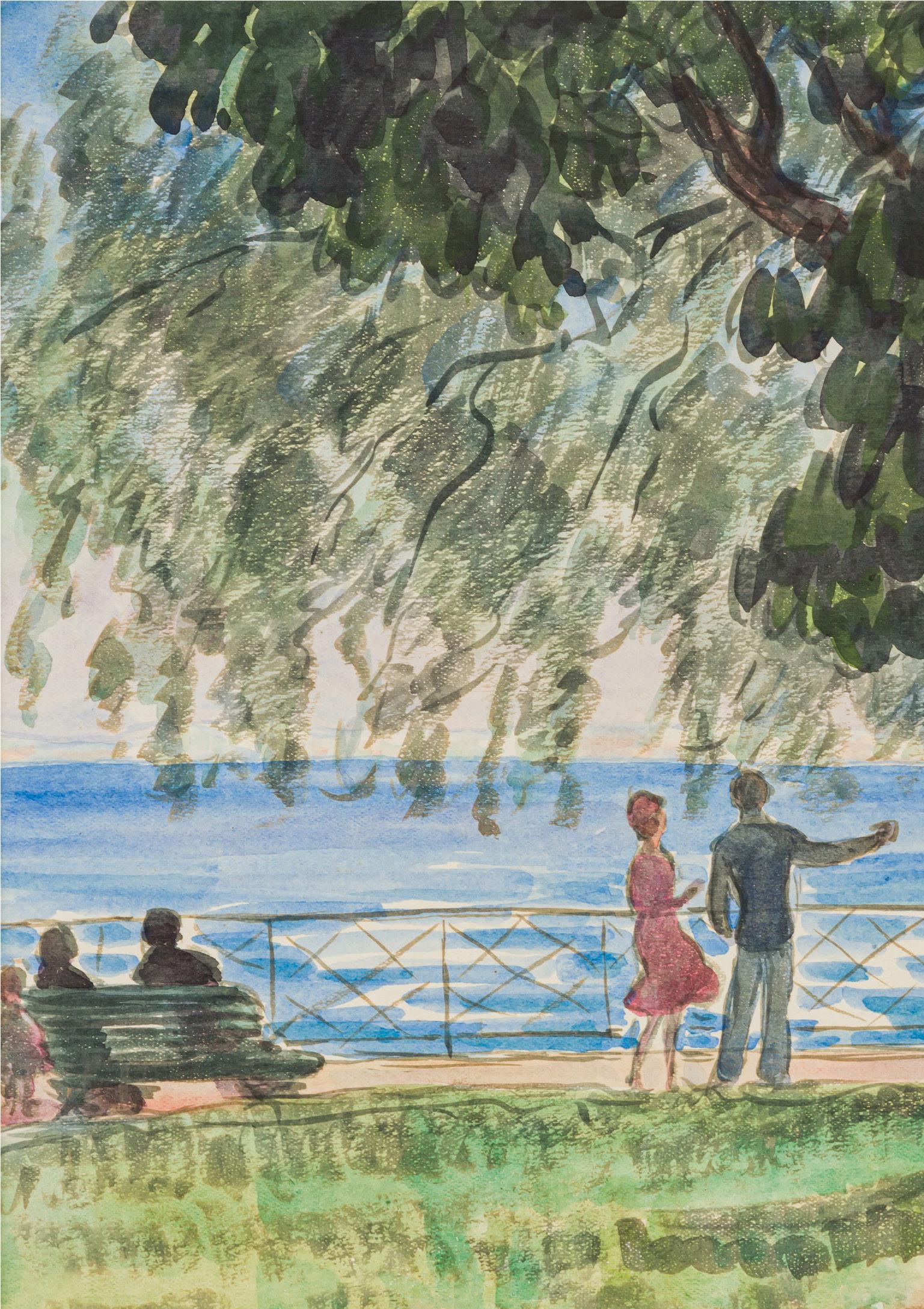 Barge by the lake signed and dated ‘A.Lebourg 1920’ (lower right) watercolour