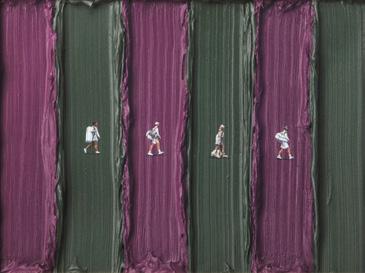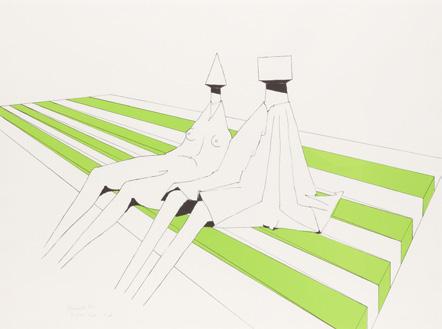 Two Sitting Figures on Stripes