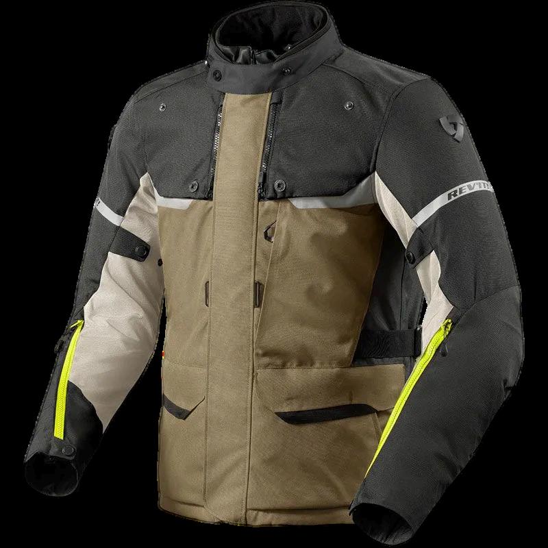 Versatile giacca da moto touring per tutte le stagioni a tre strati con membrana impermeabile rimovibile e fodera termica staccabile. Con i pannelli perforati.