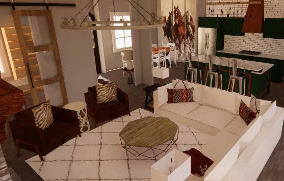 This project was based on residential design. I decided to create a singlefamily home located in East Tennessee. The concept “Rustic Roots” originates from the farmhouse inspired aesthetic. The house meets ADA complaints with roll under sinks, 5ft turn around and hallways.