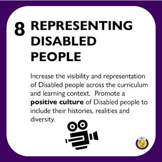 Increase the visibility and representation of Disabled people, and their history and culture in the curriculum and learning contexts.