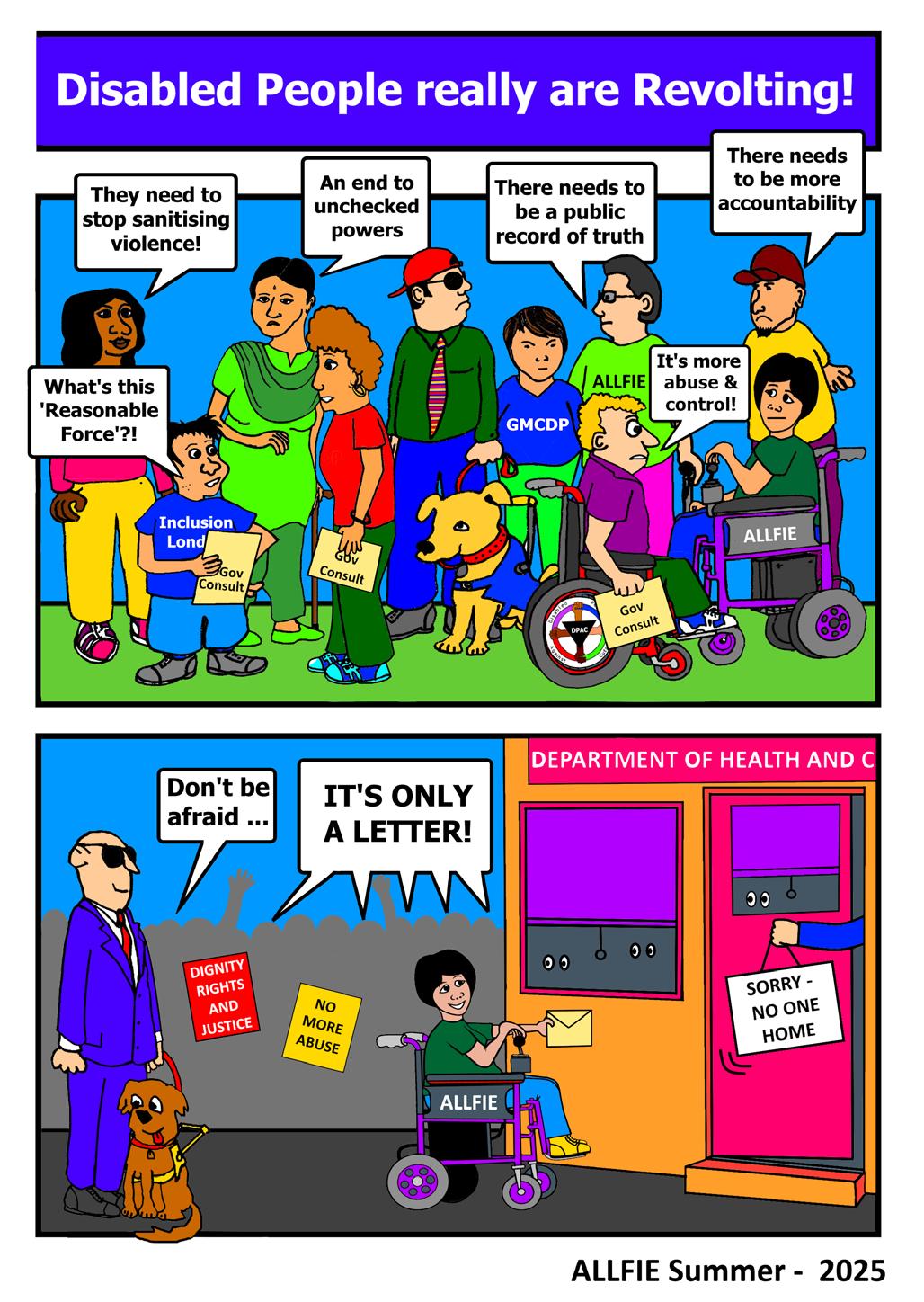 ALLFIE, in solidarity with other DPOs and activists, attended this Day of Action that included a powerful rally in Parliament Square. As we prepared for the day and drafted our speech, we made sure to lift up the voices of the many individuals who contributed to ALLFIE’s work on End Torture, including the recent consultations. This issue is not separate, it’s part of the same pattern of violence, control, and dehumanisation.
