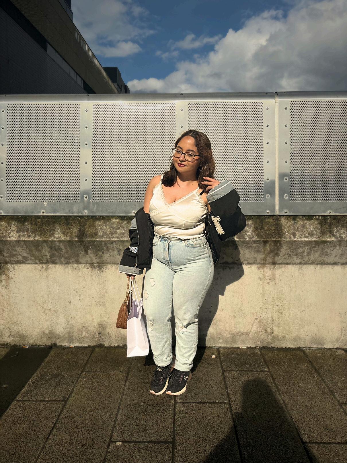 SHOP YOUR GO TO SHOP YOUR GO TO TRENDY OUTFITTRENDY OUTFIT Racer jacket - Pretty little thing Molly Mae racer jacket - £55.00 Racer jacket - Pretty little thing Molly Mae racer jacket - £55.00 Top - H&M Lacy white top - £8.99 Top - H&M Lacy white top - £8.99 Jeans - New Look denim ripped jeans - £15.99 Jeans - New Look denim ripped jeans - £15.99 Bag - Micheal Kors Brown Shoulder Bag - £229.00 Bag - Micheal Kors Brown Shoulder Bag - £229.00