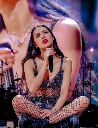 This outfit was also worn in the Guts Tour World Performance’s. It was cultivated for the main songs : Vampire , Enough for you , Logical and a few more. These songs display the opposite aesthetic to the photo above Vampire is a clear example in this photo and it portrays how she is singing about how sad and unbearable some relationships can be.
