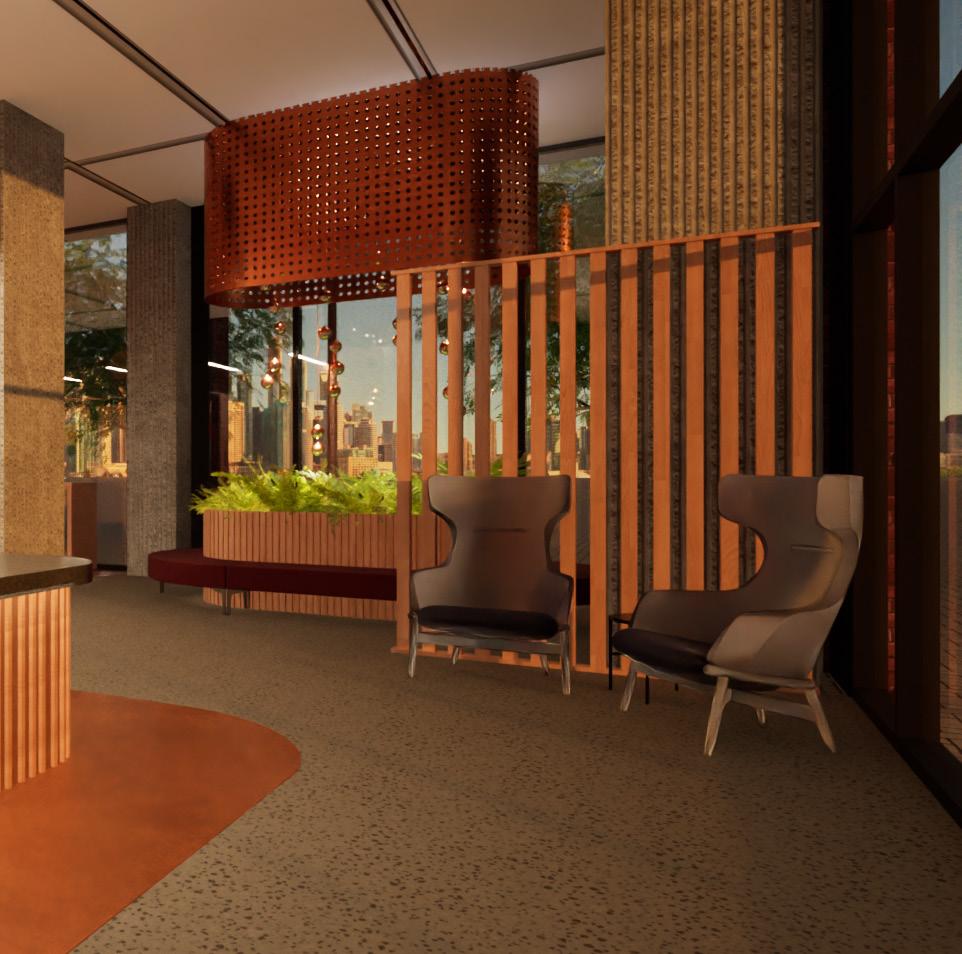 the background - kansas city, the geographical core of the united states, is a node that facilitates trade and commerce, generating a prosperous and connected community. the progression through the coworking space provides users with ammenitites and hubs for gathering with independent zones for private tasks and permanant stops