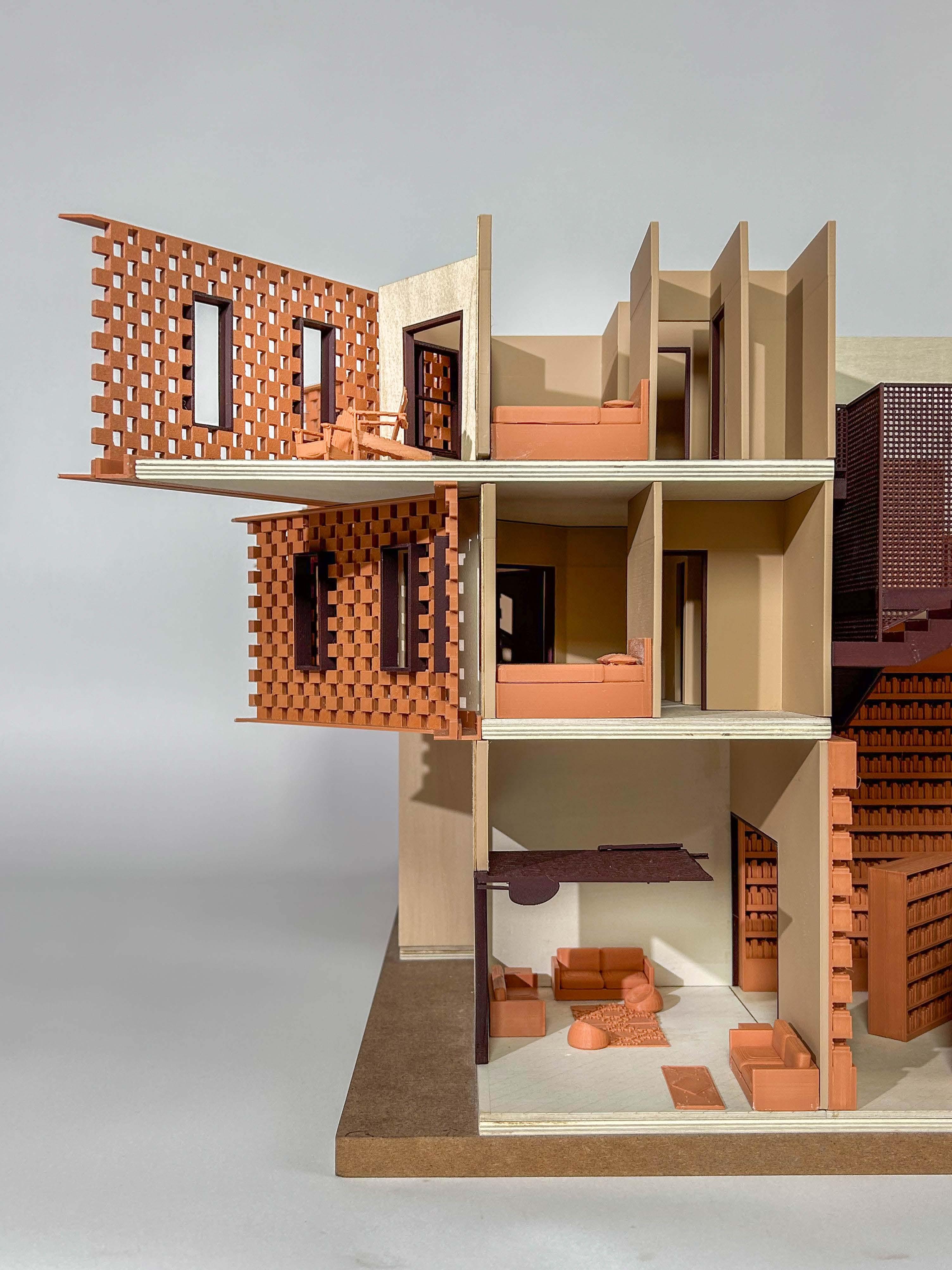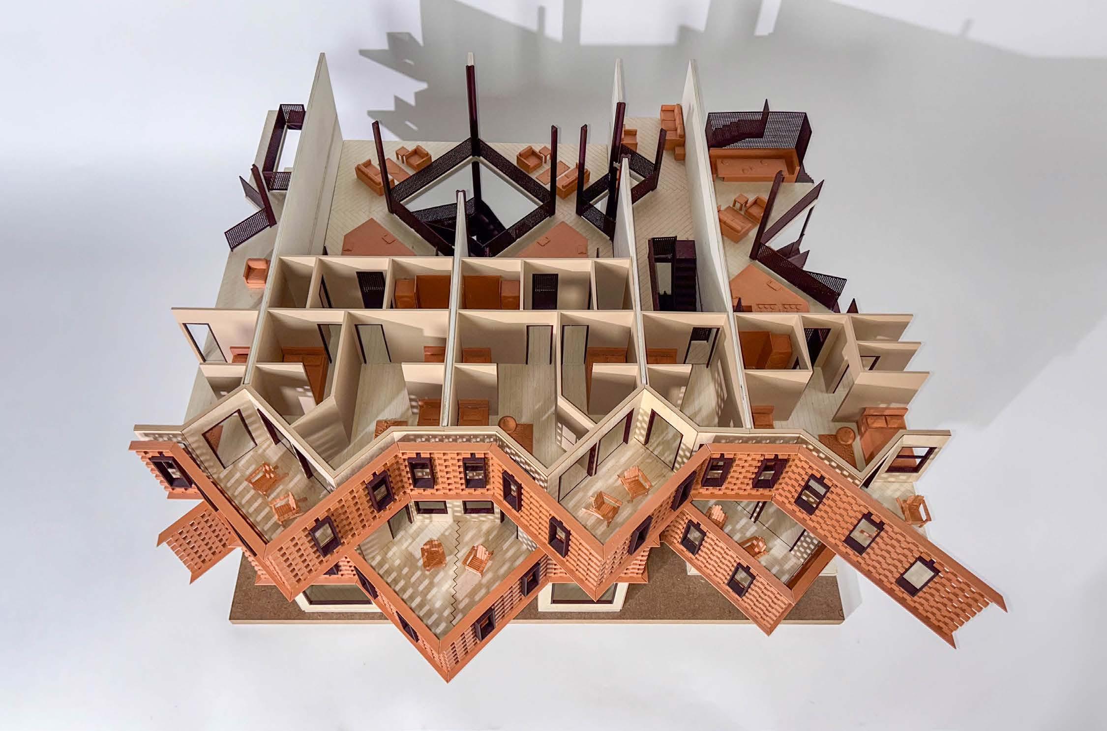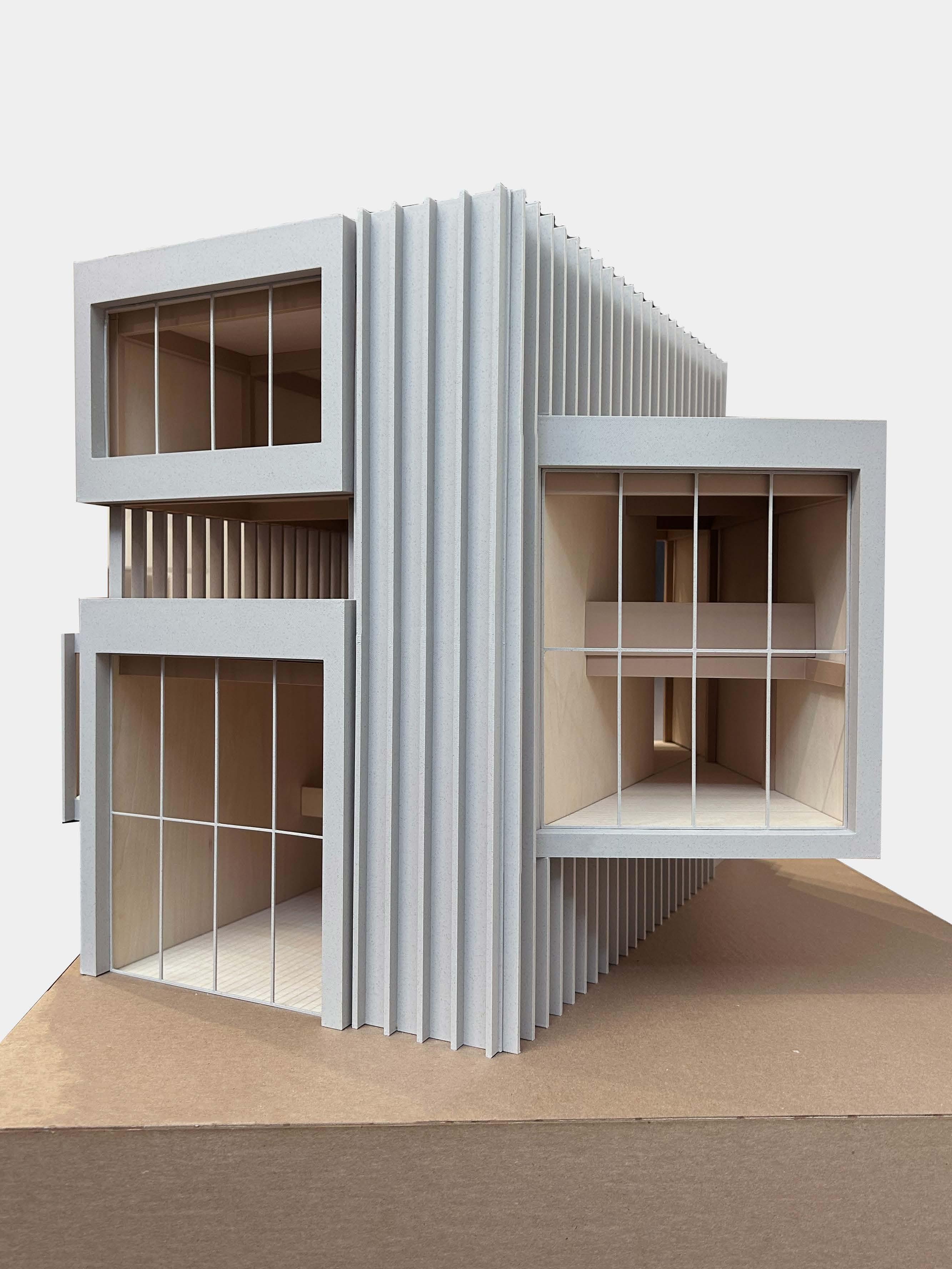 The model we created (28 x 7 x 12 in.) is a slice through the center of the building depicting its sectional qualities.