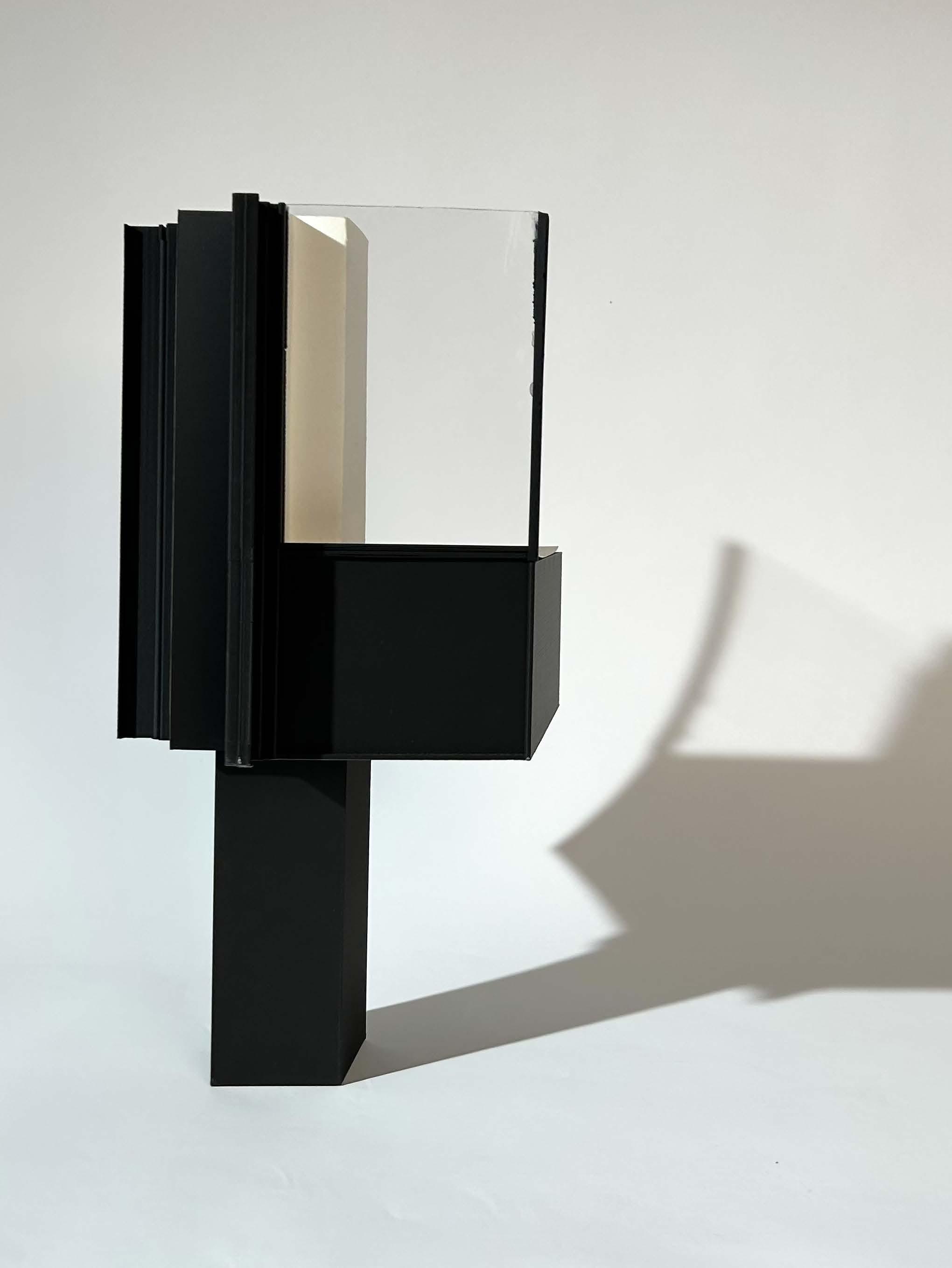 Starting with a comprehensive analysis of the technical and aesthetic characteristics of a “chunk” of the Seagram Building designed by Mies van der Rohe, I then put my small corner chunk through a series of transformations. I was inspired by some of Brian Eno’s “Oblique Strategies” as well as the International Style ideas Mies van der Rohe used in his design. Using Eno’s “reverse” strategy, I reversed the corner so the external nonstructural ornamented facade faces the interior and the structural part faces the exterior.
