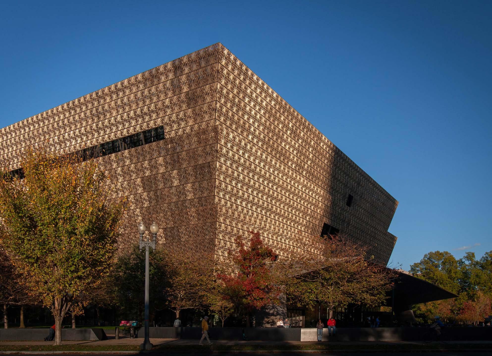The images to the left showcase the shading effect of the terracotta curtain wall and the dappled sunlight let into the building.