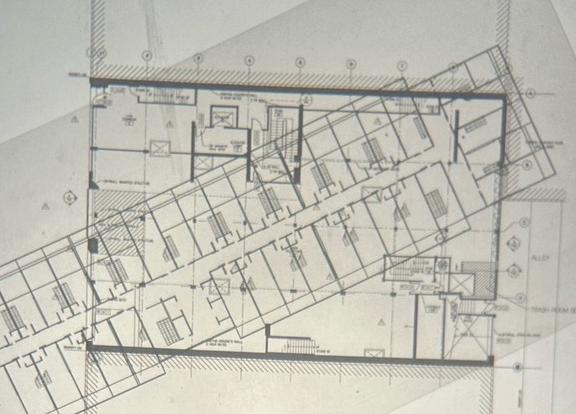 Above is the Unite d’Habitation projected diagonally through an existing precedent building. From this concept image we developed the plans, first adjusting the scale and eliminating unwanted elements, then adding programming.