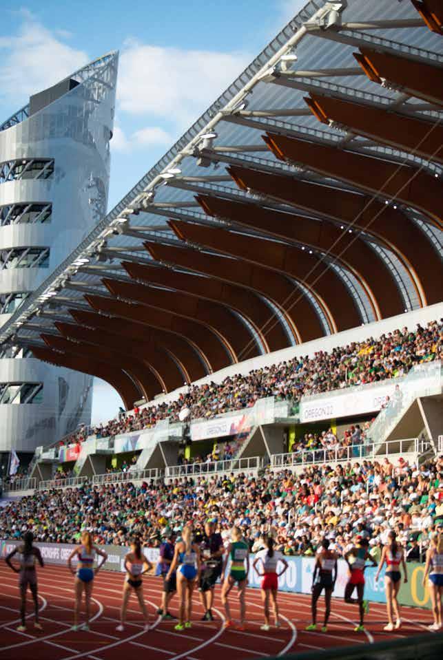 Abby Steiner takes the baton. She pulls ahead. I’ve been working here as an intern through the UO’s School of Journalism and Communication, helping World Athletics with graphics, gathering media for socials, and taking photos in my spare time. It’s been pretty cool (understatement). I’ve heard so many languages. I’ve seen a lot of cool shoes. I’ve met some athletes and even gotten to work with a few of them.