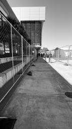 Just a few minutes later, people are streaming down from the stands. I see the speckled green of the seats emerge. Most days, I’ve been here before the crowd arrives and after it leaves. Before and after, the stadium is speckled green; during, it’s more golden-brown, the visual conglomeration of thousands and thousands of people.