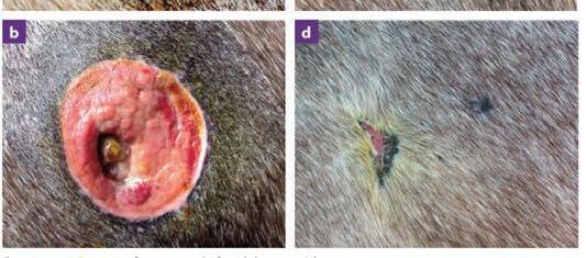In many cases the sarcoids can be removed with the horse under standing sedation in combination with local anaesthetic and pain relief. If however, the sarcoids are not accessible or the patient is particularly fractious, it may be necessary to administer a general anaesthetic. The sarcoid is removed along with a minimum of a 1cm margin of healthy surrounding tissue to try to ensure all the root has been removed. The wound will therefore, often appear significantly larger than the sarcoid that was present. It is generally advised that the sarcoid is submitted for histopathology to confirm the diagnosis and, to ensure that surgical margins have been achieved. The wound is left open to heal by granulation, the time taken for healing depends upon the size and location of the wound, however most are typically healed in 4 - 8 weeks.