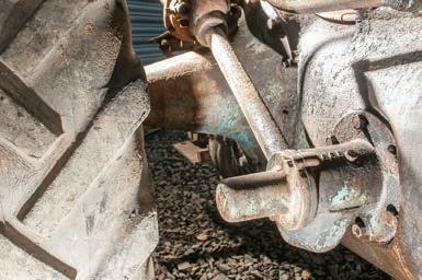 The replacement engine is a CLM (Compagnie Lilloise de Moteurs) diesel two-stroke of modular design which produced 11hp per cylinder and since this engine is a twin, its power output would have been 22hp, about the same as the original Fordson TVO lump. Built under licence from Junkers in Germany, this intriguing piece of engineering has some very interesting features. Instead of the traditional crankcase induction associated with a two-stroke, there are two pistons per cylinder. The lower piston is connected to the crankshaft in the traditional manner, but the upper piston is connected to its own crankshaft which operates in conjunction with the lower crank via two conrods, which are arranged along the outside of the cylinder and in a gallery passing through the transfer ports. As the pistons converge on the combustion chamber, the air charge is compressed ready for the injection of fuel. At the same time, in the void above the upper piston the pressure is reduced, opening an atmospheric valve which allows the next air charge to enter in readiness for the next stroke. As the injector introduces the atomised fuel and the burn takes place between the pistons, they separate, spinning the crankshafts, the lower piston exposes the exhaust port as the upper unveils the transfer port, forcing the next charge down into the combustion chamber and the cycle begins again. There are a lot of simultaneous operations going on so, as you might expect, when it fires into life it all sounds a bit frantic, demanding attention in a way that the original 4 cylinder, four-stroke Fordson engine never could. This old mongrel has an unmistakeable bark. the drum above the hitch. There was a steel cable attached to the drum, which pulled on the trailer brakes and by leaning on the hand clutch lever the drum turned and kept the trailer behind the tractor when going downhill. At the other end of the drum shaft there is even a band brake, which could be tightened to act as a trailer handbrake.” Since the French registration indicates that the tractor came from the Puy-de-Dôme region in the mountainous Massif Central, this adaption allowed the driver to enjoy his lunch in his favourite hostelry, regardless of whether it was at the top of the mountain, half way up or half way down.