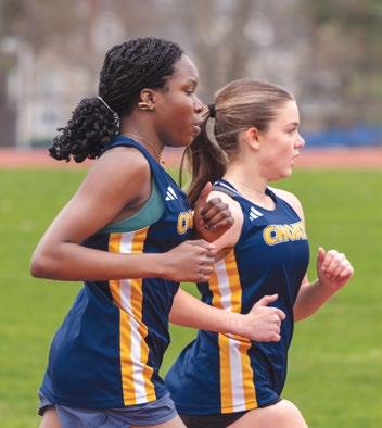 2 Kankan Adekoya ’27 (front) and Mia Bratti ’25 (back) head to the finish line during regular season.