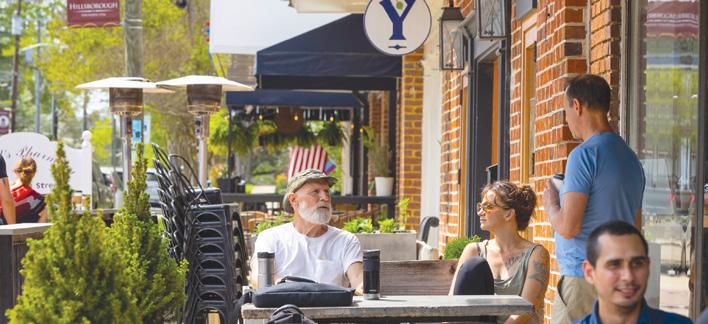 Dining options include Hillsborough Bakeshop & Pasta Co, Nomad, Wooden Nickel, Saratoga Grill, the Village Diner and Hillsborough BBQ. Have a drink at the new Rookery.