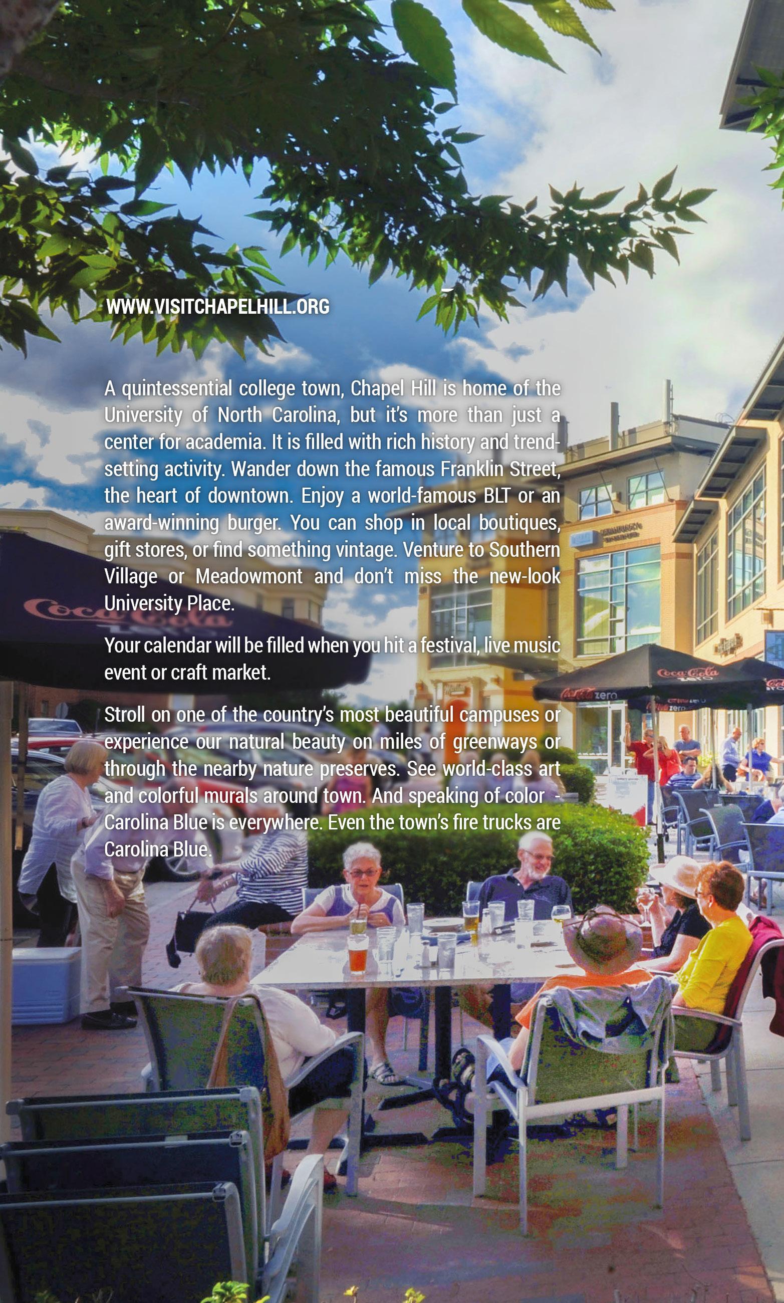 CHAPEL HILL/ORANGE COUNTY VISITORS BUREAU 308 West Franklin St, Chapel Hill, NC (USA) 27516 888.968.2060 | 919.245.4320 info@visitchapelhill.org www.visitchapelhill.org