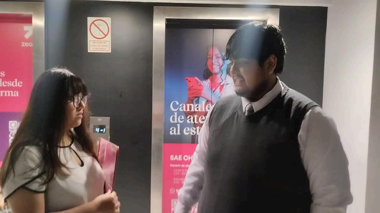 Escena1: Es una tarde tranquila, te encuentras en un elevador junto a una persona que parece un poco cansada. Justo antes de que las puertas se cierren, decides aprovechar el momento.