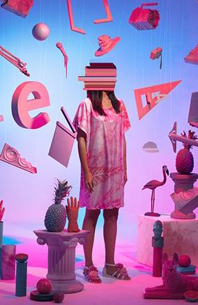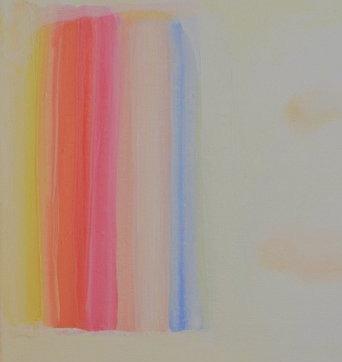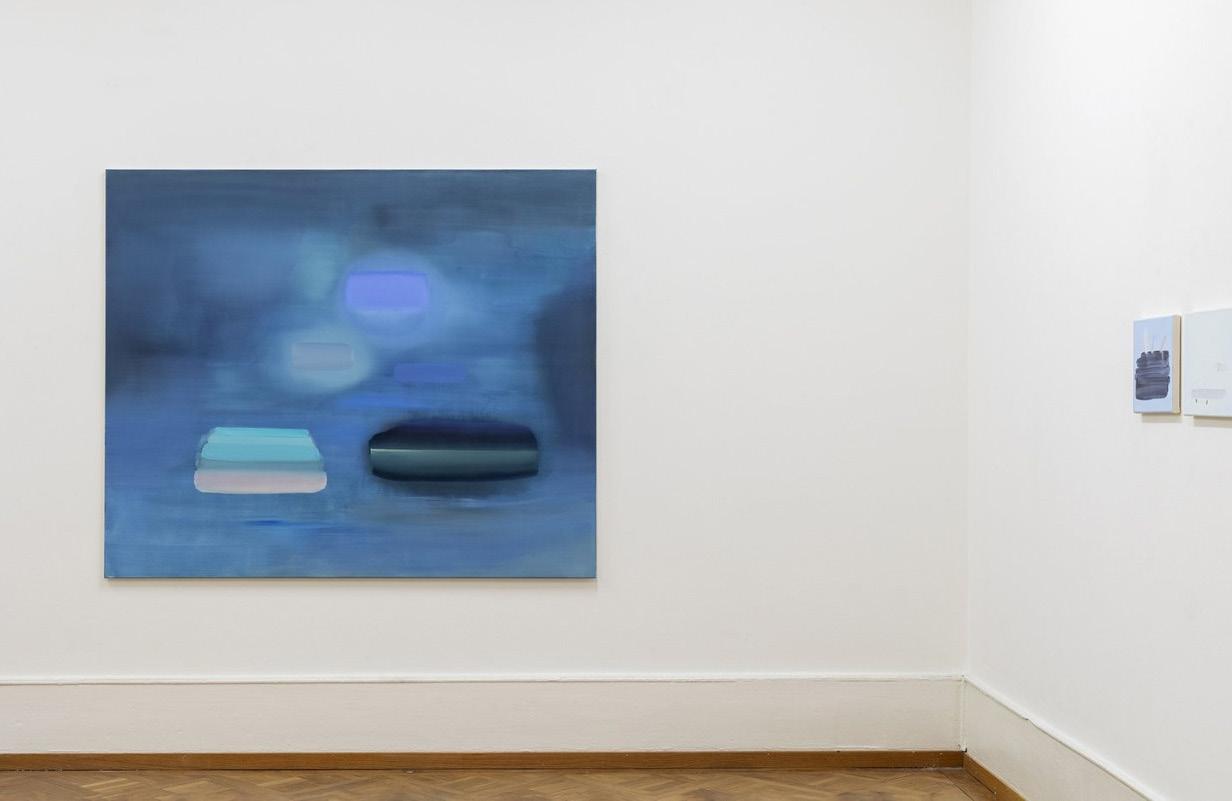 las superficies de color apila das de la serie “Acumulación”, que parecen ser bloques in grávidos colocados uno sobre el otro, hasta los escenarios de sus mundos oníricos figu rativos. Formadas con finos velos de color, las figuras que retrata flotan sobre superficies acuáticas, bailan sobre suelos de color pastel y se reúnen para intercambiar historias olvidadas. Son difíciles de discernir, pero en cuanto se les distingue, se produce un sentimiento y una conciencia de su transitoriedad, como los recuerdos frescos de los sueños, similares al estado del Adespertar.travésde pinceladas suaves, las siluetas se desenfocan y están en constante peligro de desaparecer de la mirada. Lo idílico de estos mundos no