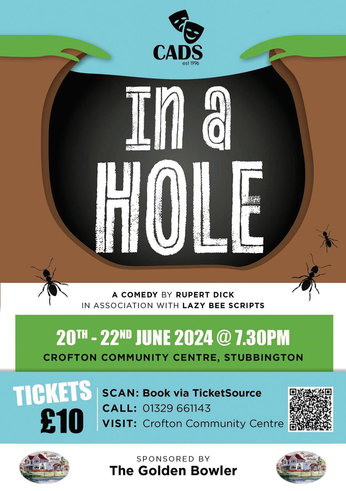 Murder mystery where the audience tries to guess the identity of the killer. This will be entitled ‘Dead Lucky or The Murder Mystery That Goes Wrong’, at The Crofton Hall Theatre, Crofton Community Centre, Stubbington, PO14 2PP on Friday 19th and Saturday 20th July. Doors open 7:30pm, curtains 8pm. Tickets, £10, available from 01329 662128 or Crofton Community Centre. Please book early to avoid disappointment. Seating will be at tables and you are welcome to bring your own refreshments.