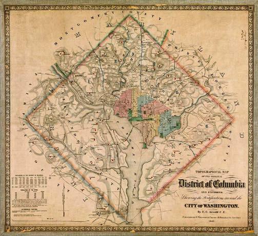 Topographical map of the original District of Columbia and environs showing the fortifications around the city of Washington.