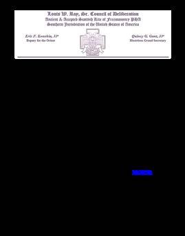 “Congratulations to the Deputy for the Orient of the District of Columbia, Sovereign Grand Inspector General Eric Konohia, 33°, and the Louis W. Roy, Sr., Council of Deliberation’s Eagles Club on releasing the first issue of their journal titled simply, “Chokmah!” The title alone speaks volumes of your Orient’s eager fraters and their un-matched enthusiasm. It is my sincerest hope and desire that this spark will ignite a flame throughout the Southern Jurisdiction, from which purification comes producing in man, a physical representation of the essence of the word...Chokmah! Again, congratulations Eagles...keep holding your ground and soar on!”