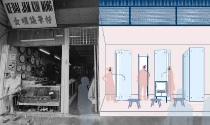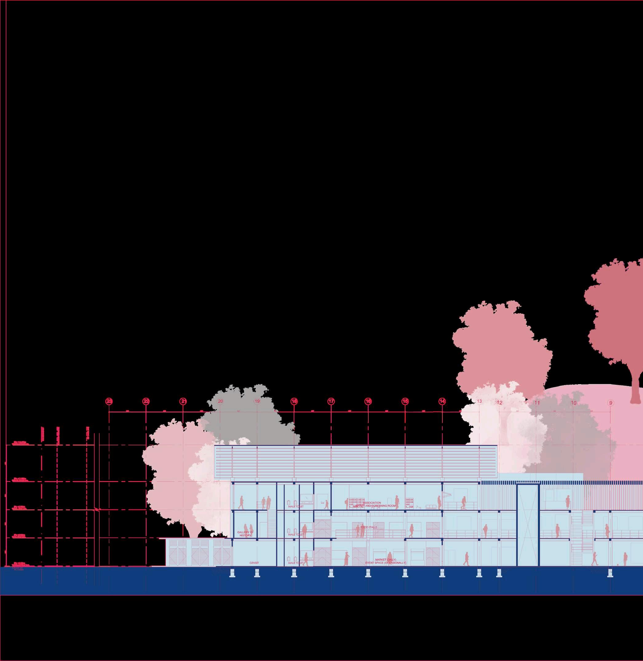 Exposed structural elements re-embody the artistic expression in the initial project, symbolizing the destruction and rebirth of Kuala Kubu Bharu.