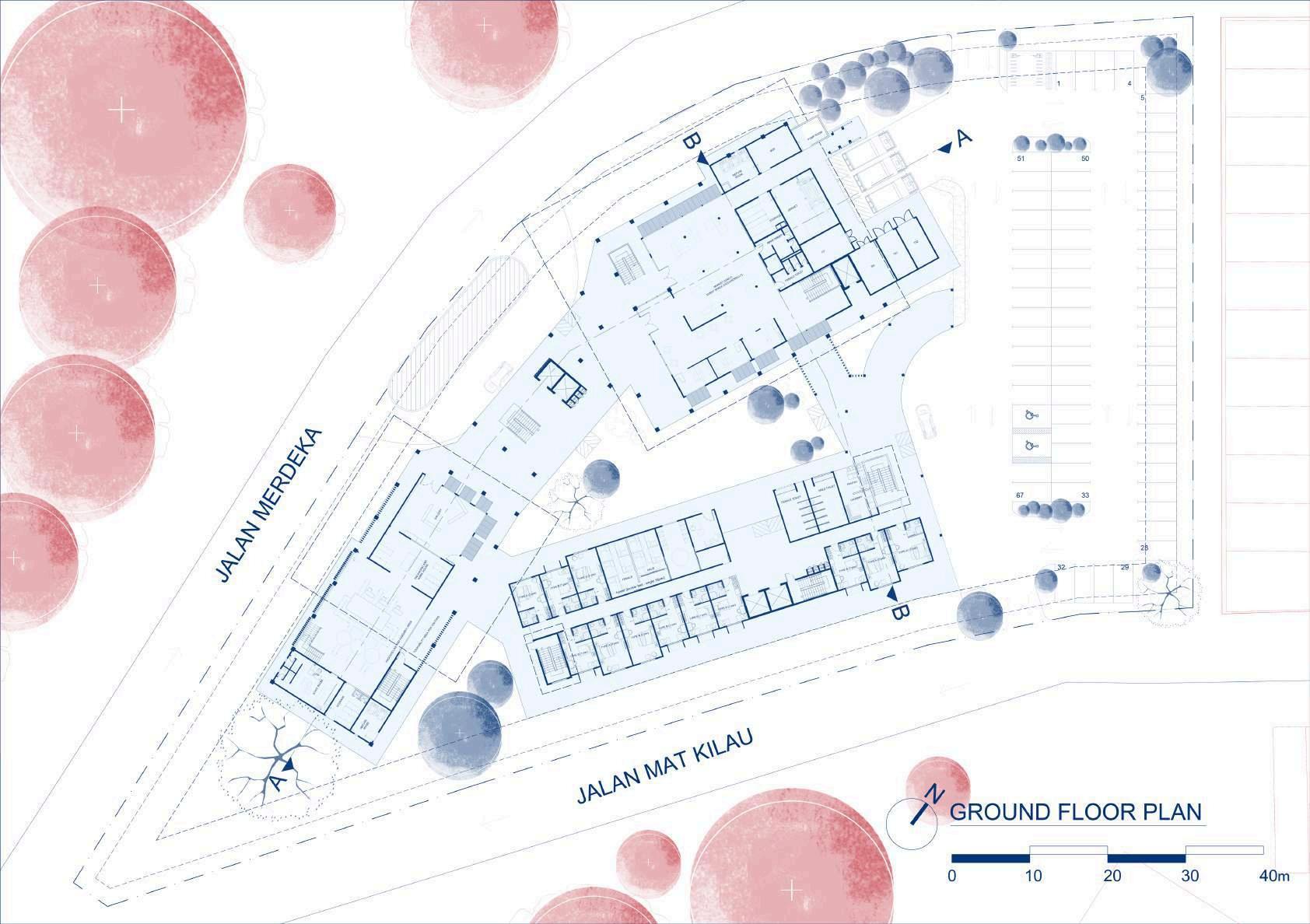 having pedestrain lane along the site opens up the possibility of pedestrain entrance. another pedestrain entrance from the carpark leading towards drop-off point from the public carpark outside of the site.