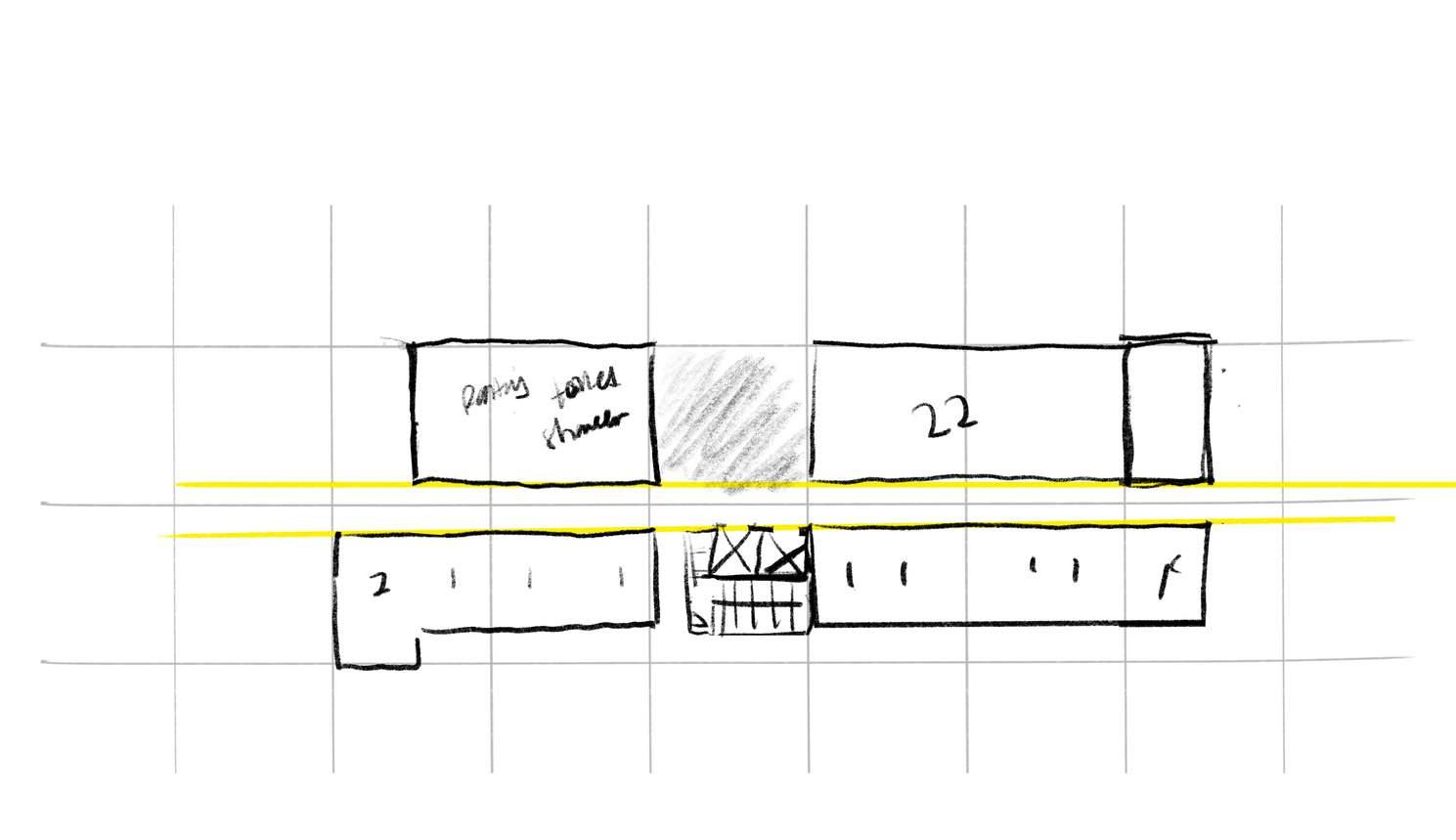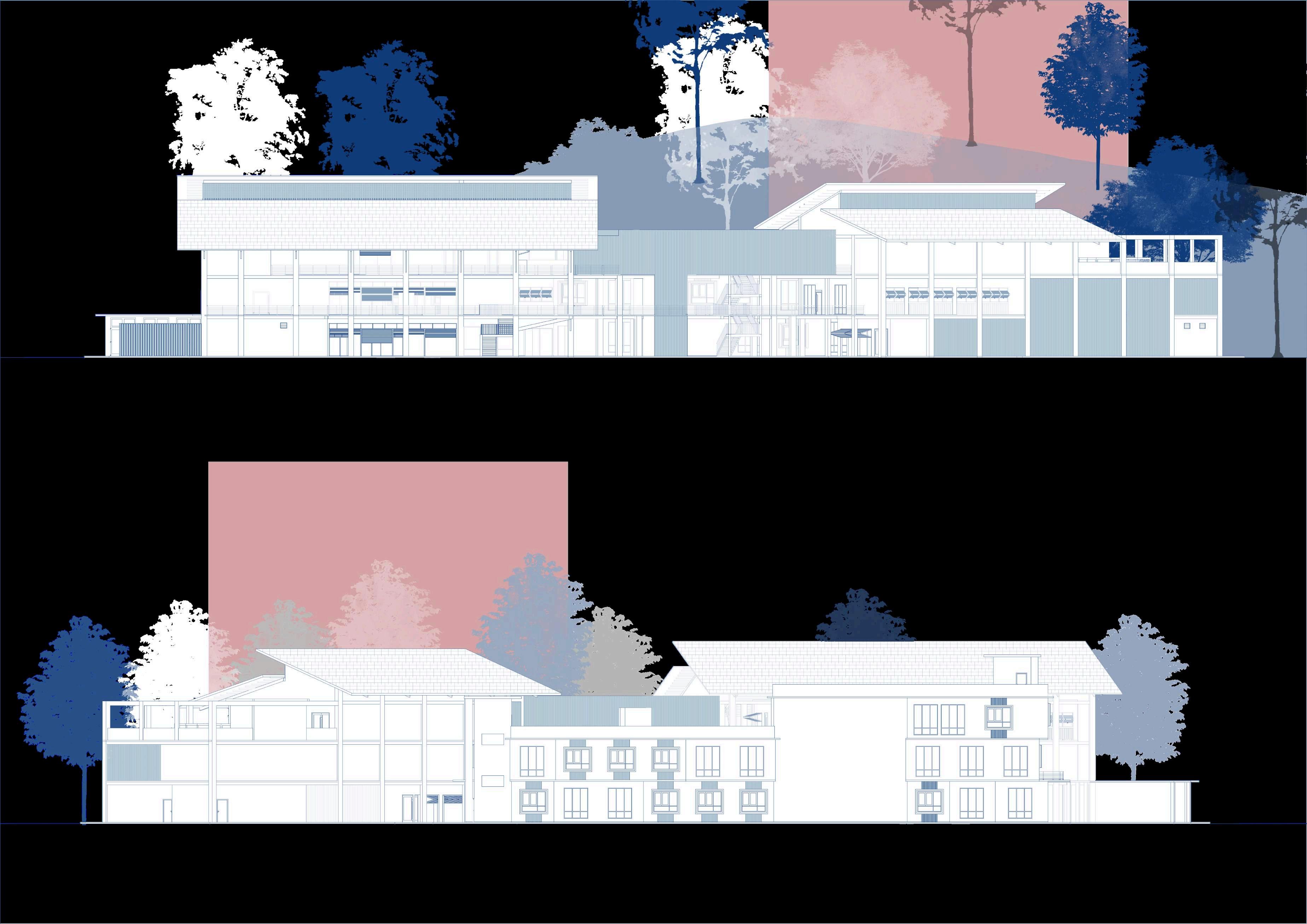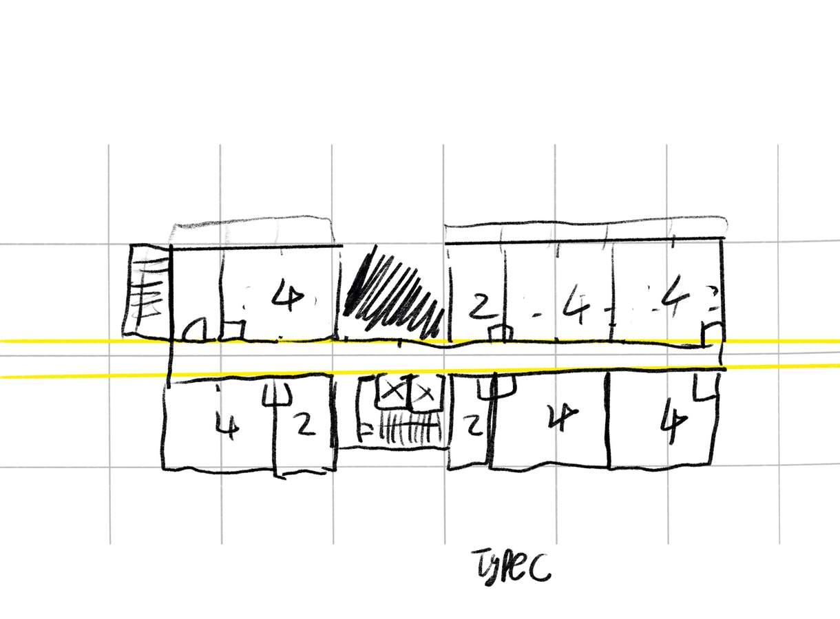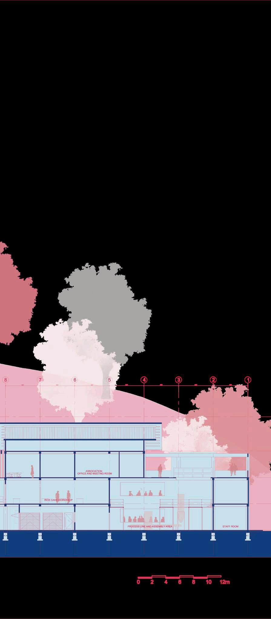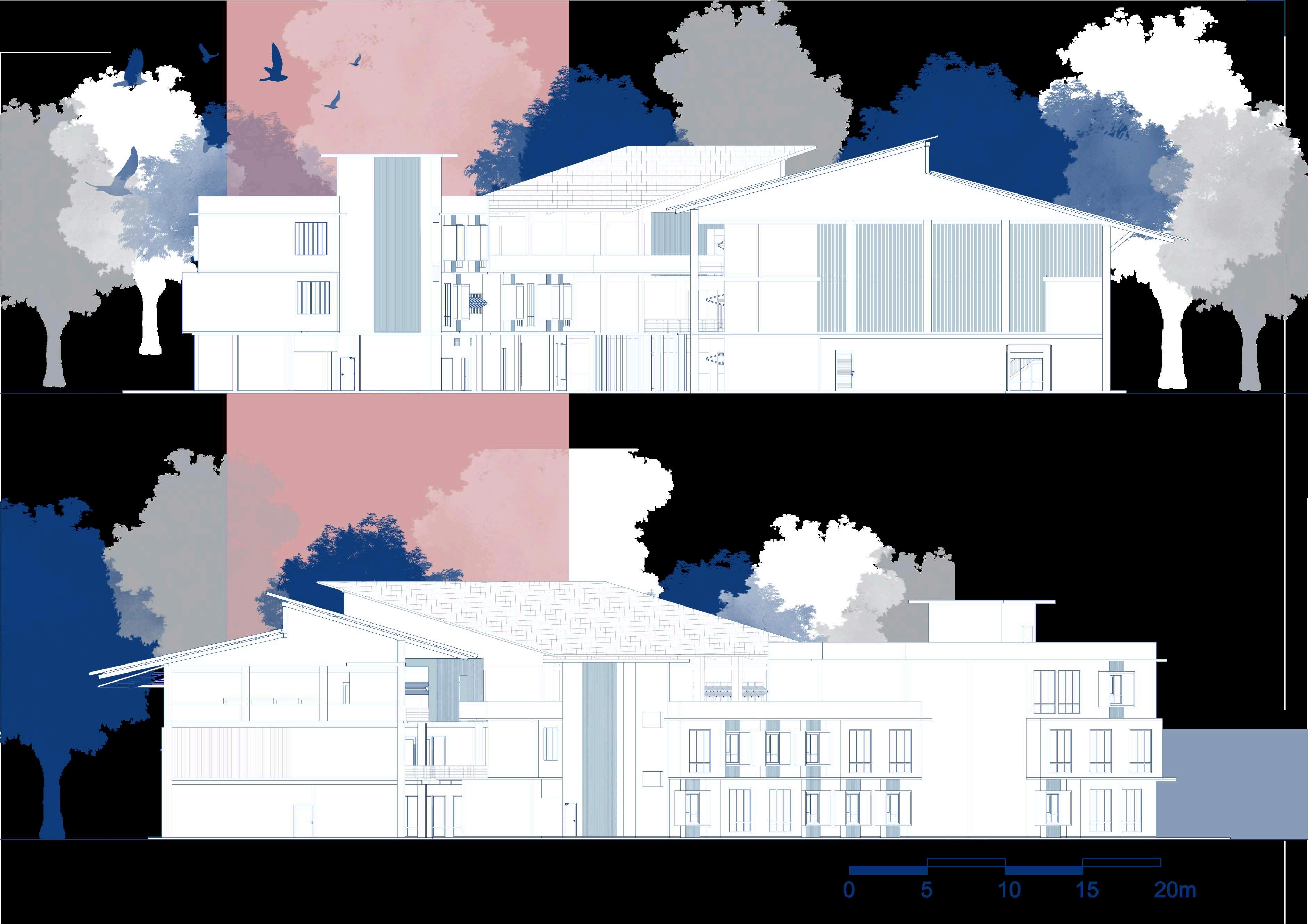 Starting with the massing of two separated block pf building. Then create space using grids, devide the block into different section, repetative and aligning to th boundary of the site