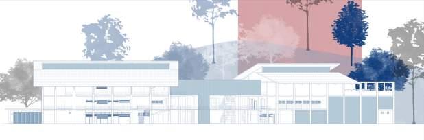 Shape the building according to the site, starting from a single-level height.