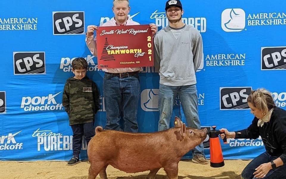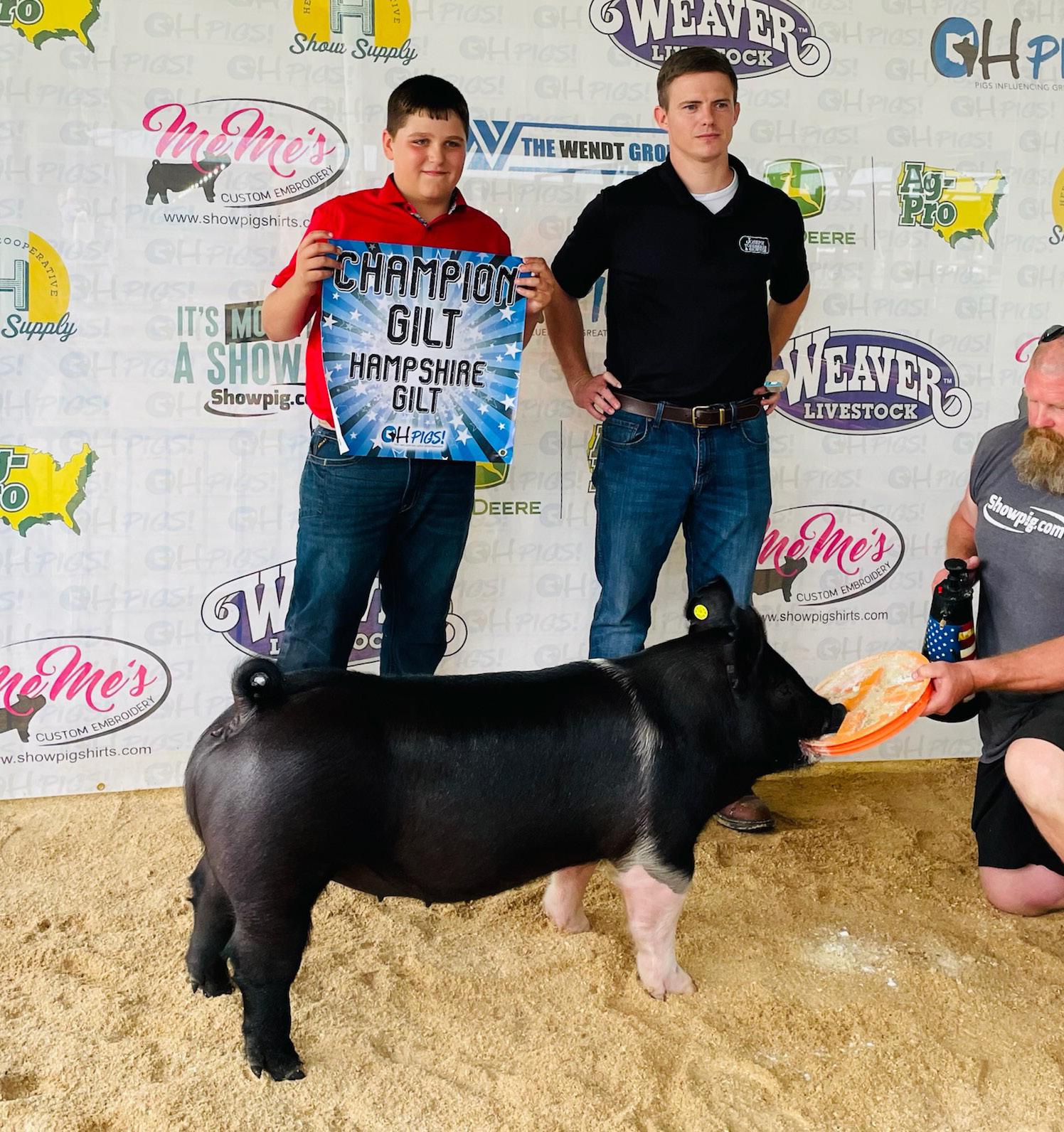 –Littermate Champion and Reserve Champion Tamworth Gilts at the 2022 Delaware County Fair.