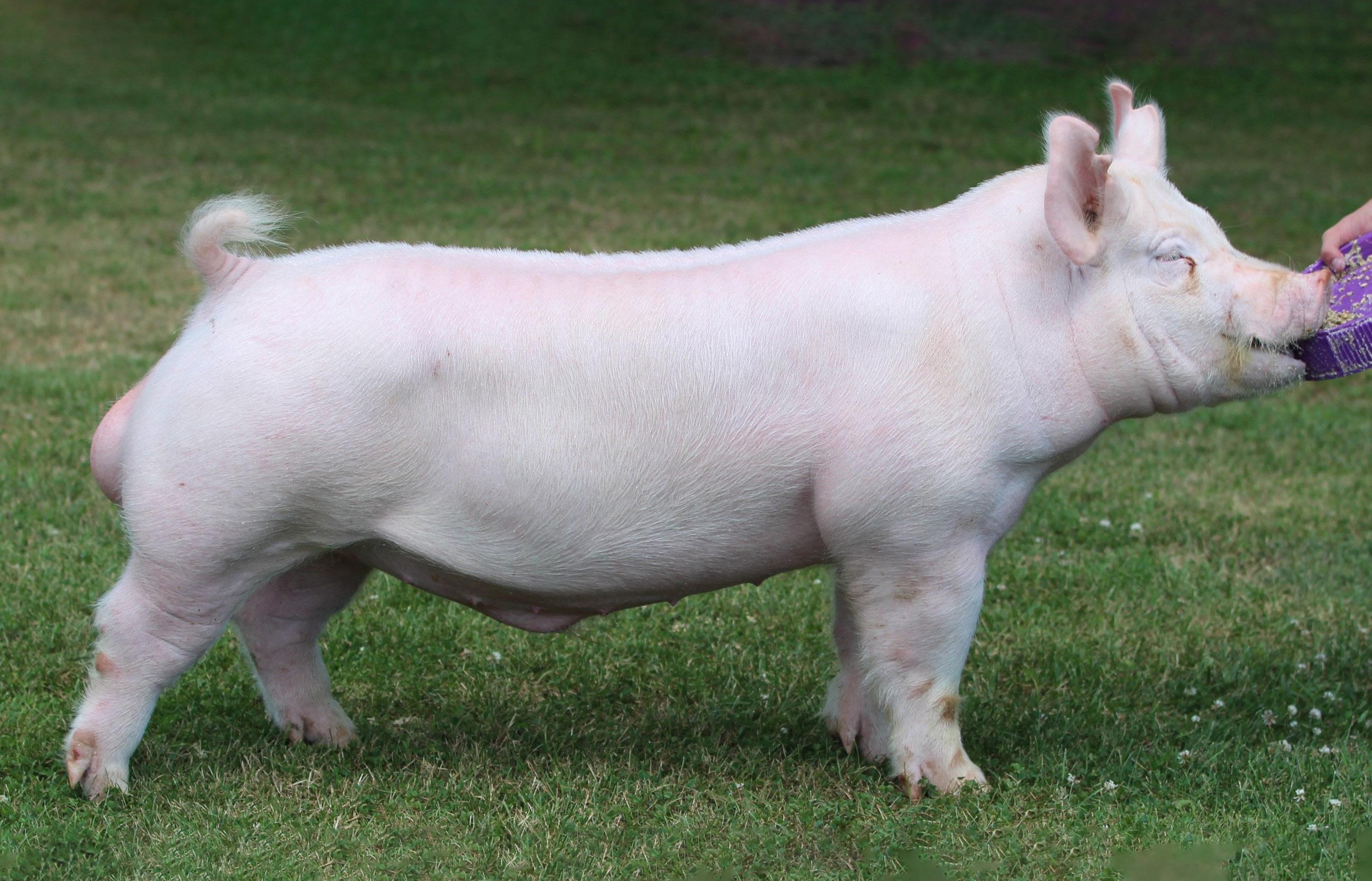 There is no doubt about it that Grady Genetics has been a dominate player in the Hereford Breed. Master Craft comes from a great pedigree on the sire and dam side of the pedigree. He is very well muscled with a killer look out through his hip and hind leg. His is tall shouldered and super sound made. Back shape and center rib are excellent and he balances up from the side very well. His extra cool look and sleek neck line sets him apart from most boars in the breed. Master Craft needs to be used to Hereford’s more athletic and attractive while adding muscle to win shows!