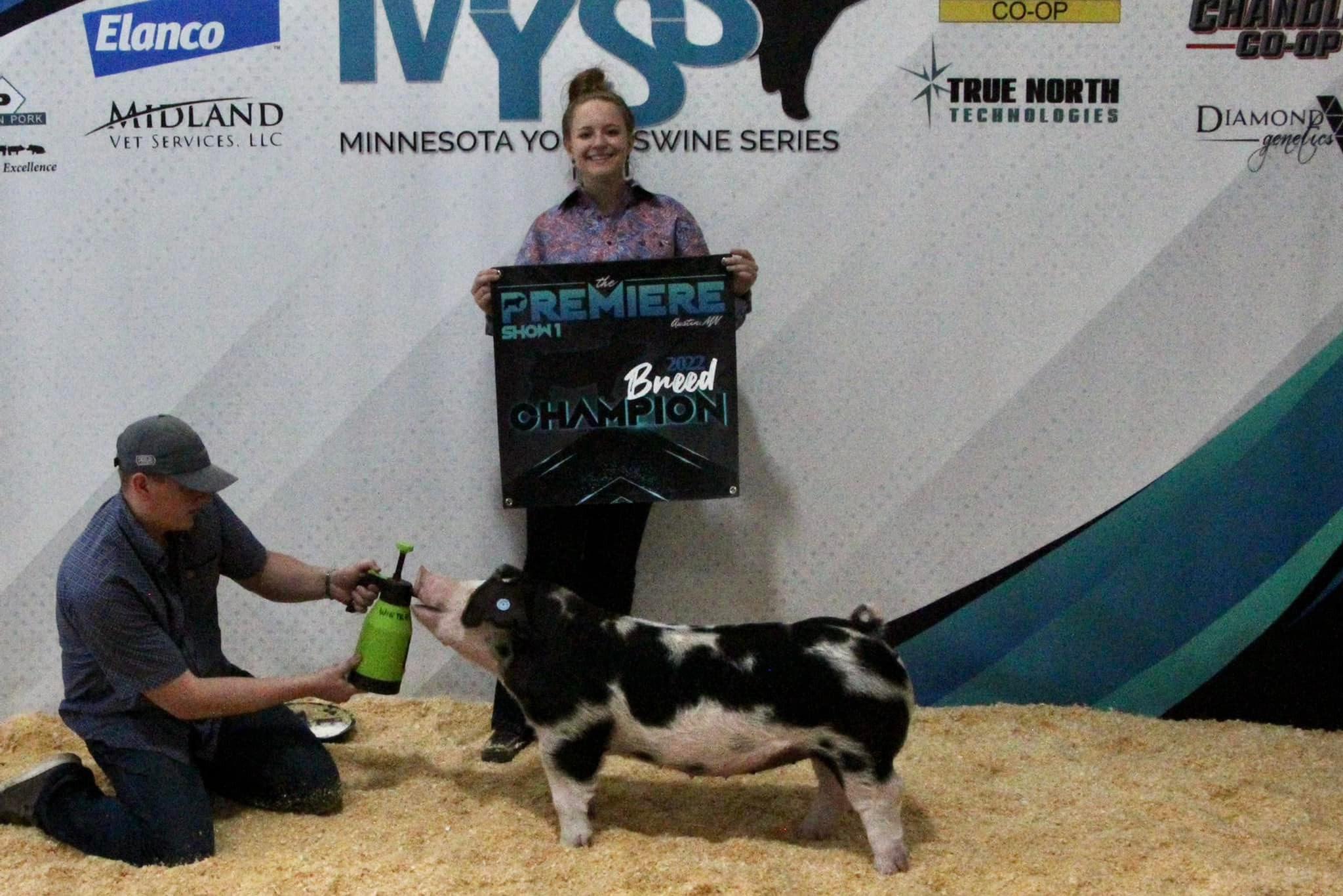 –Hardwood’s littermates are cleaning house: Littermate sister was 4th Overall Tamworth Gilt at NJSS, a littermate brother was Champion Tamworth and 4th Overall at Clinton County, and another littermate was Champion Tamworth and 4th Overall in WI.