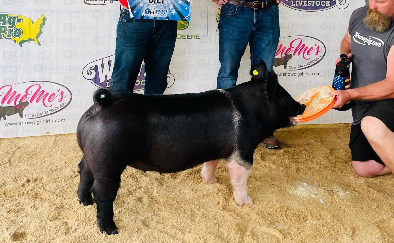 –His mother, the Guess What sow, had raised Champion Tamworth Barrow at the 2020 Calhoun County Swine Show, Champion Tamworth Barrow at the 2020 Maryland State Fair, 3rd Overall Tamworth Barrow at the 2021 Mid–South Regional, and the Reserve Grand Champion Gilt Overall at the Iroqois County Fair.