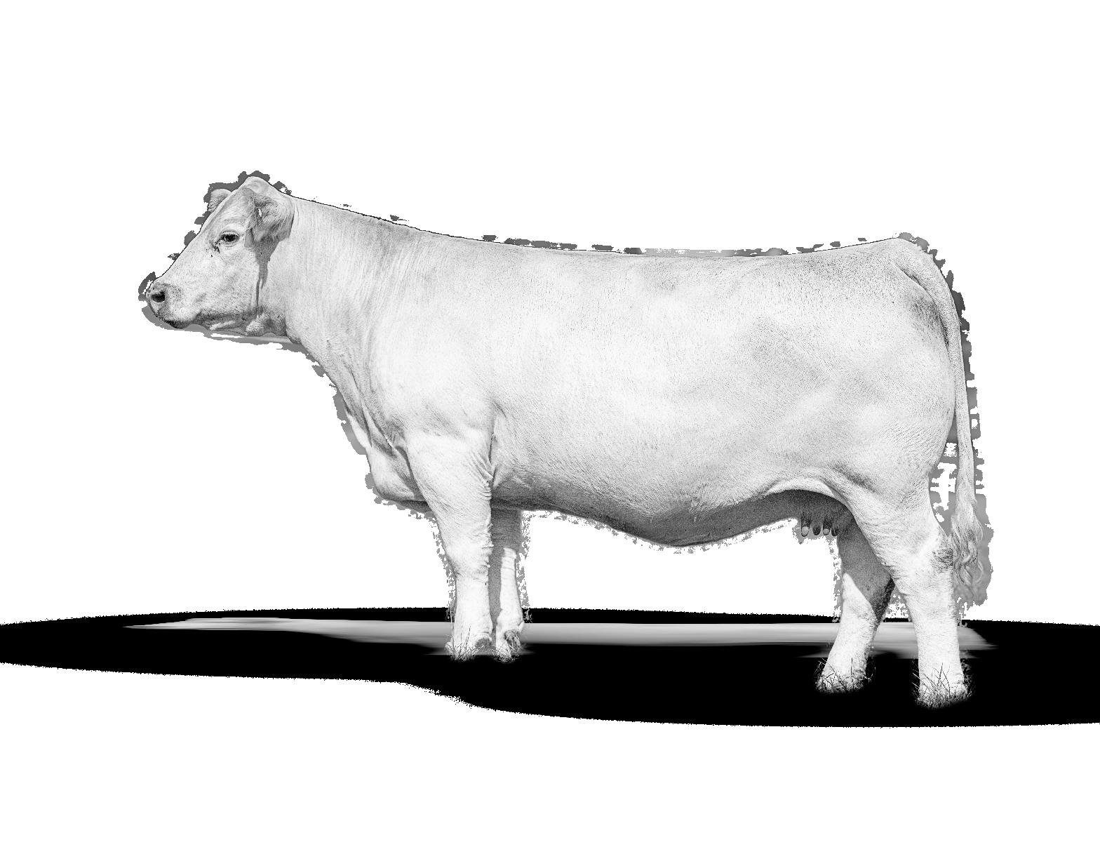 The 1st Megatron daughter born here and she is truly impressive! Huge-bodied, sound structured, eye-catching and attractive. With her awesome set of EPDs and doublebred to the Brenda cow family only makes her more special. Megatron was the second high-selling bull in the 2024 Wright Bull Sale when 2/3 interest sold for $20,000 selling to Big Creek Charolais and Bradley Cattle. This was shortly after he was the popular lead-off bull in the 2024 Denver Reserve Grand Champion Pen-ofBulls. He scored an astounding IMF of 5.04 and a crazy 174 ratio! His numbers were through the roof and remain there today with EPDs in the top 1% of the breed for WW, MTL, CW, MARB & TSI along with top 2% for YW and 3% for REA! This great young heifer has 9 EPD traits in the top 15% of the breed.