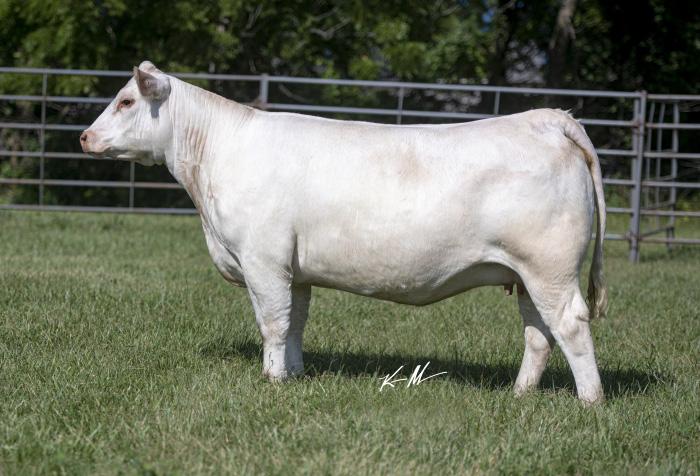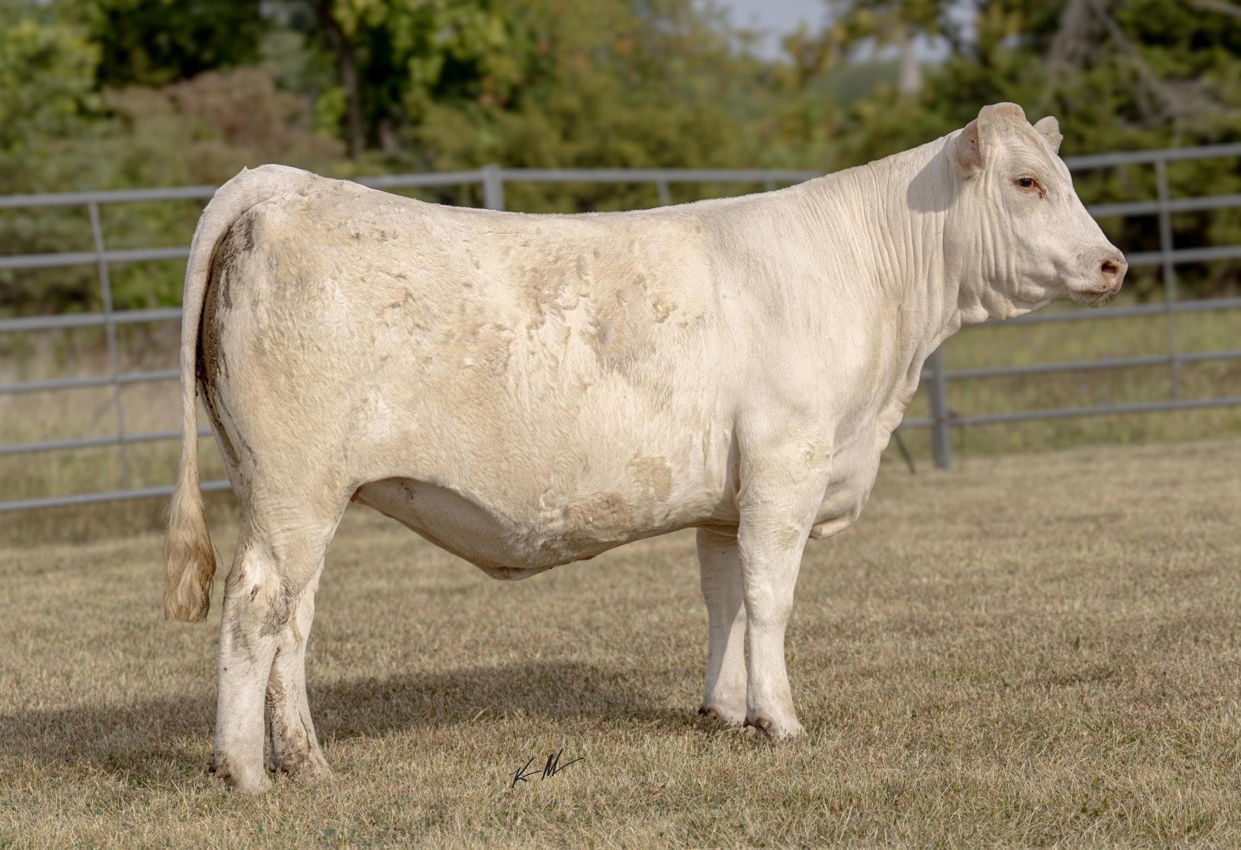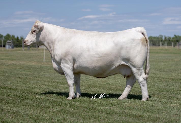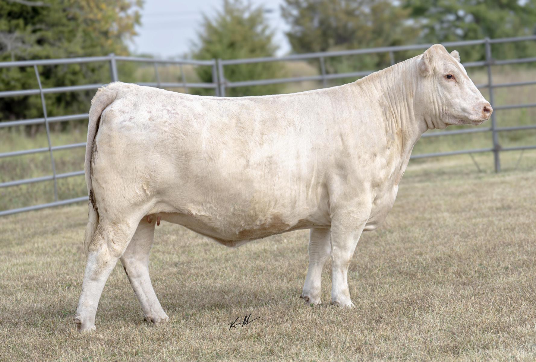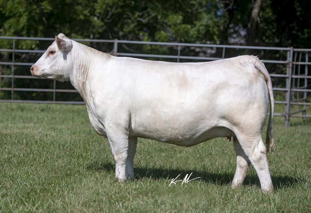 of highly recognized names in Charolais history! Every sire and dam in her three generation pedigree has sires that have been successfully used in AI programs across the United States and donor dams that are powerful genetic masterpieces too. This Inferno daughter is an ET product out of the highest selling donor dam in the famous M&M Charolais Dispersal M&M Ms Stealth 8512 ET that has produced 70 progeny.