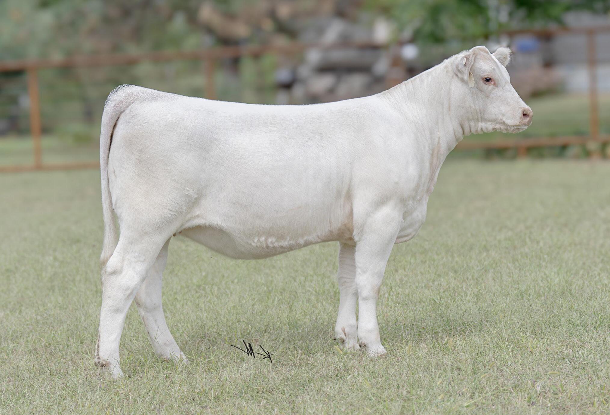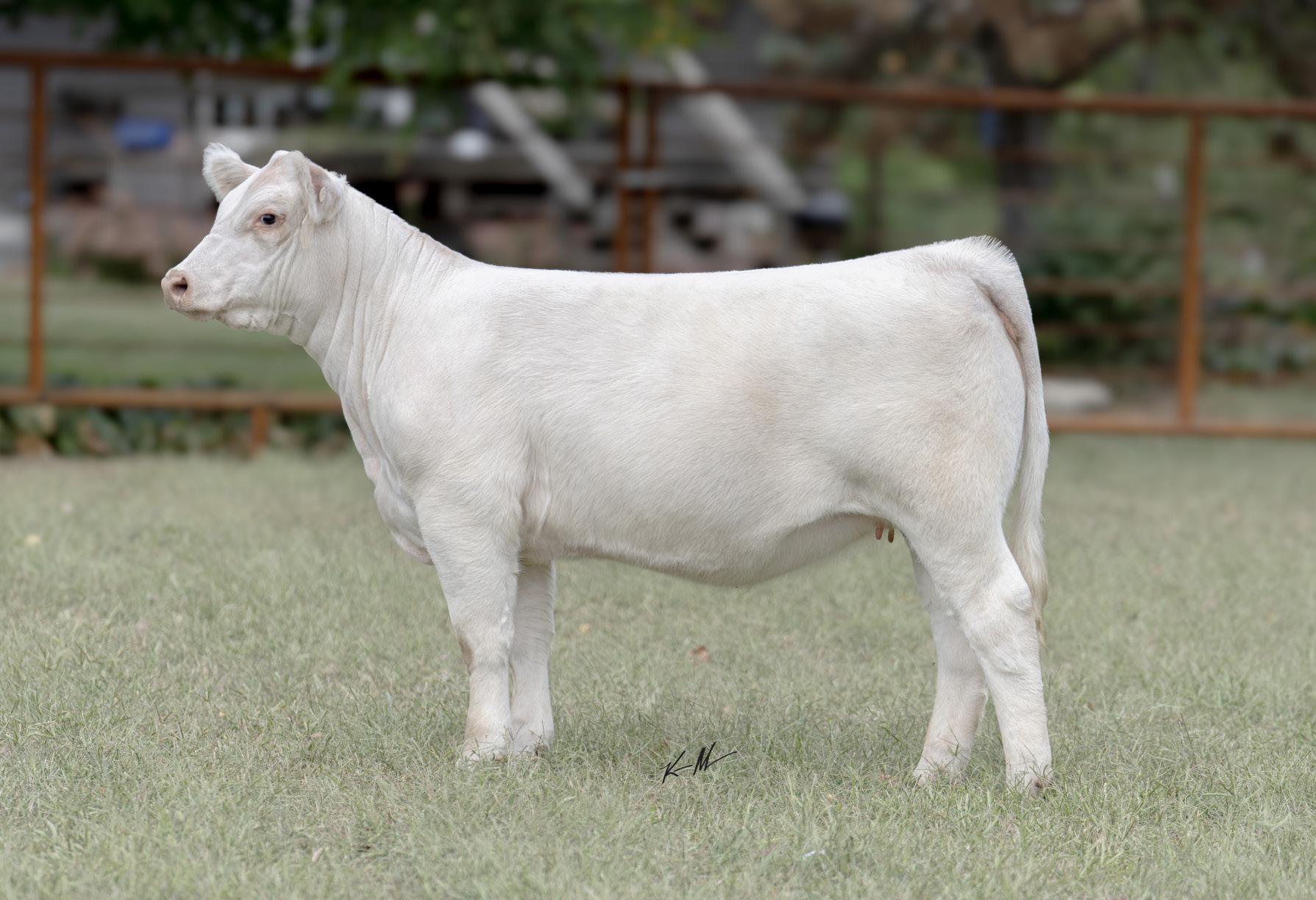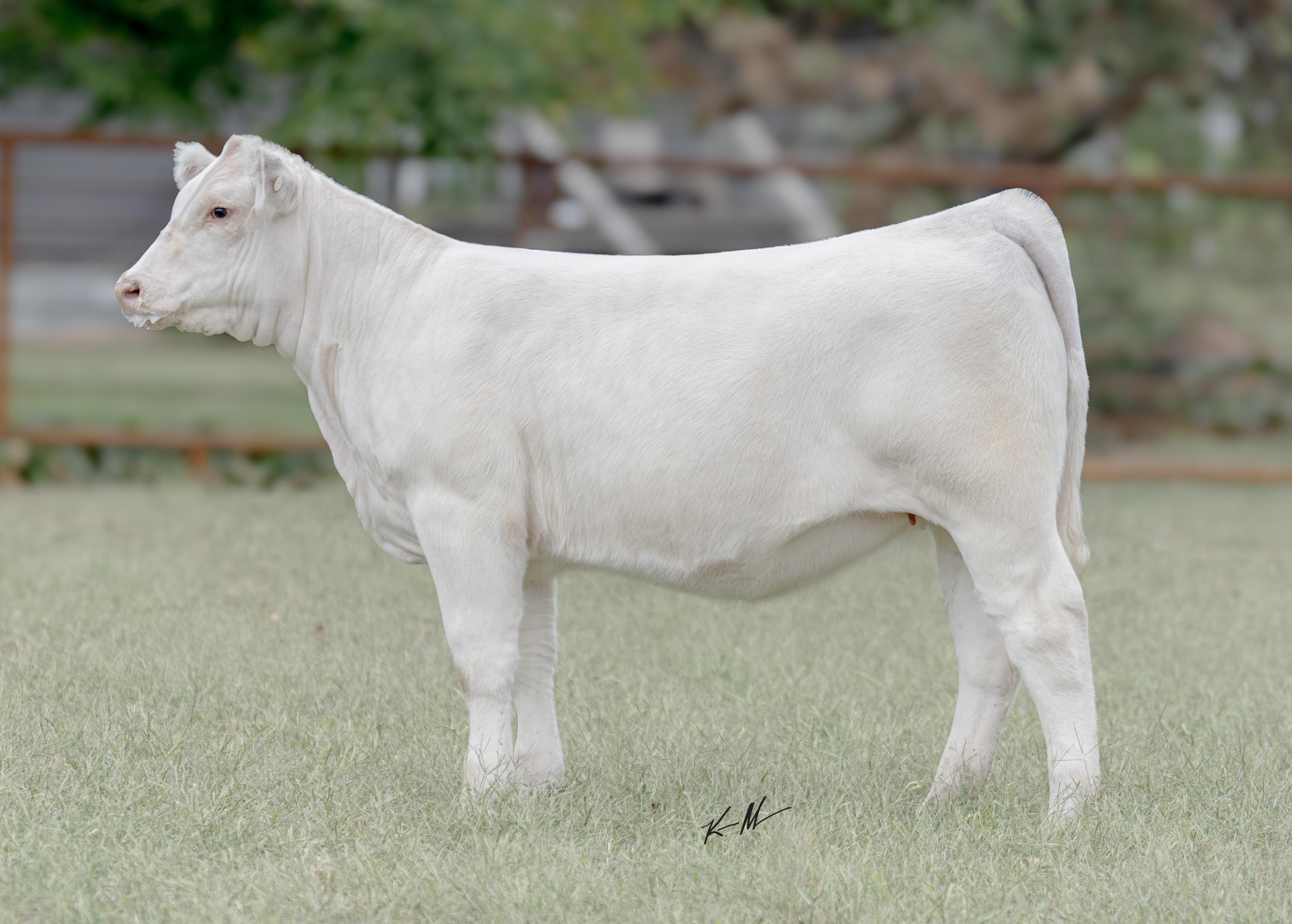 of highly recognized names in Charolais history! Every sire and dam in her three generation pedigree has sires that have been successfully used in AI programs across the United States and donor dams that are powerful genetic masterpieces too. This Inferno daughter is an ET product out of the highest selling donor dam in the famous M&M Charolais Dispersal M&M Ms Stealth 8512 ET that has produced 70 progeny.