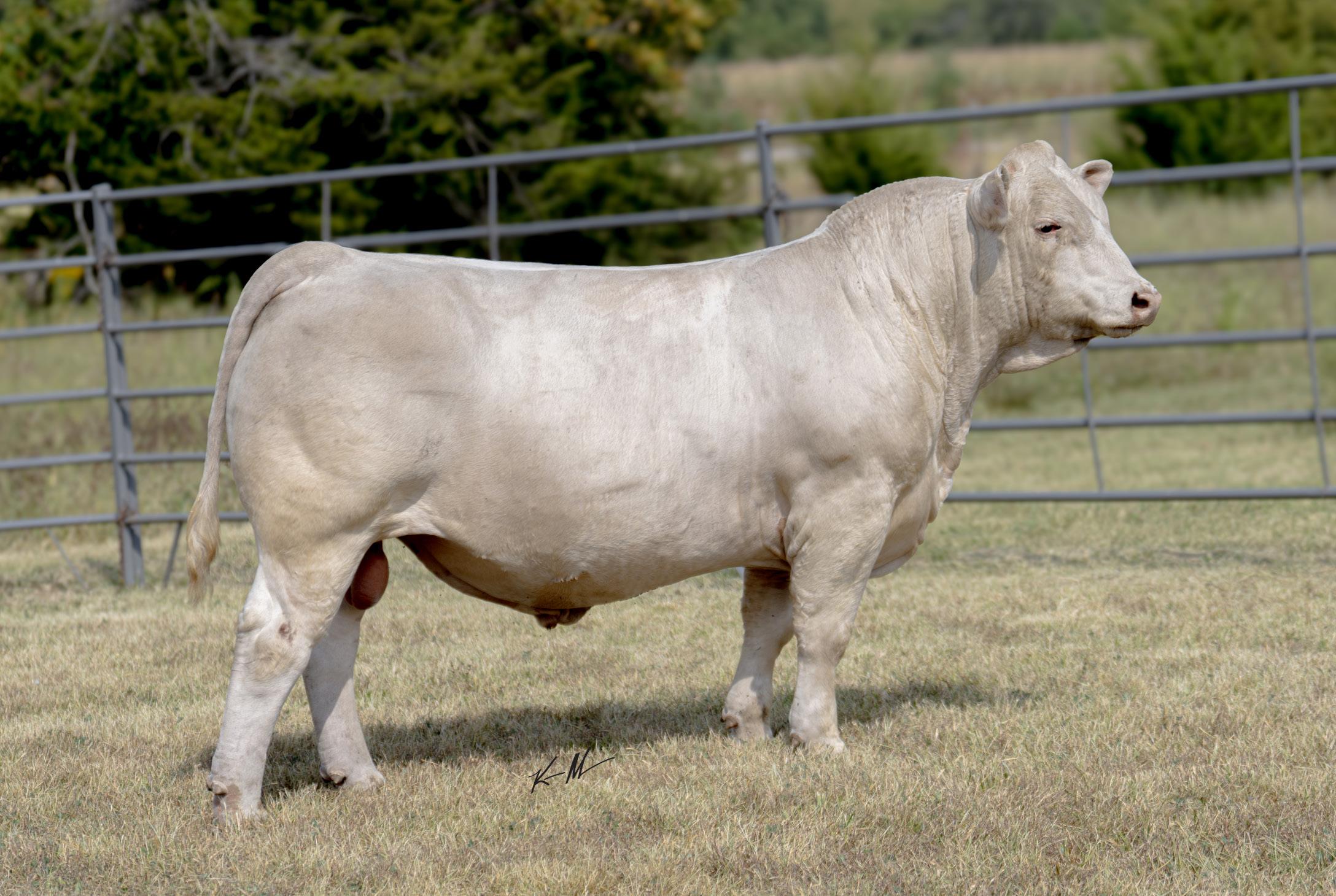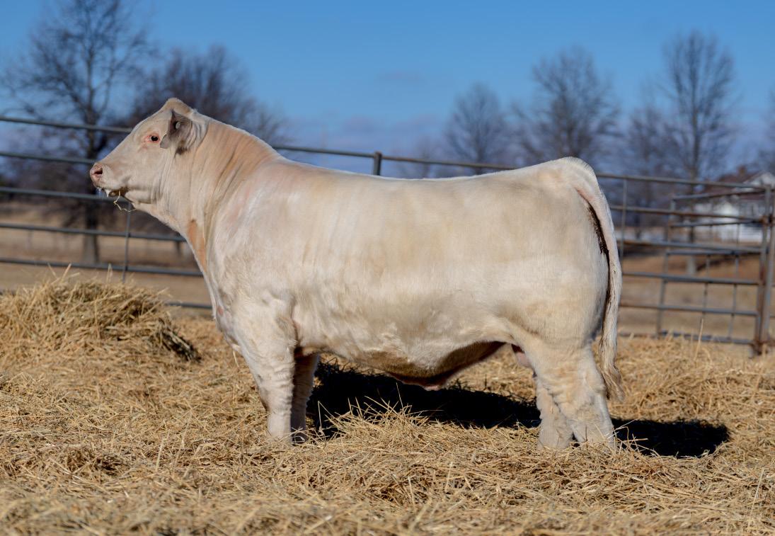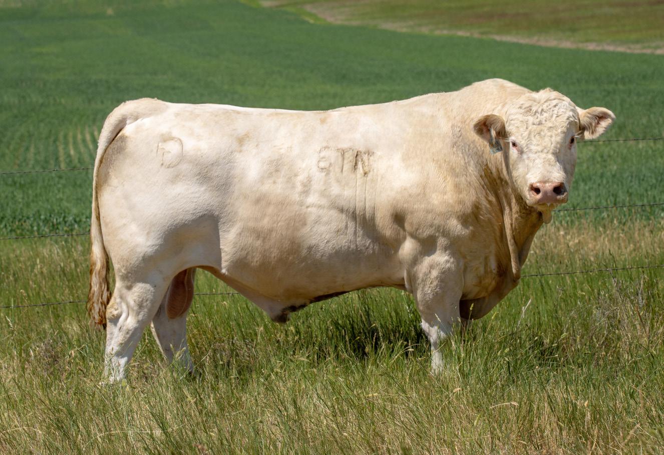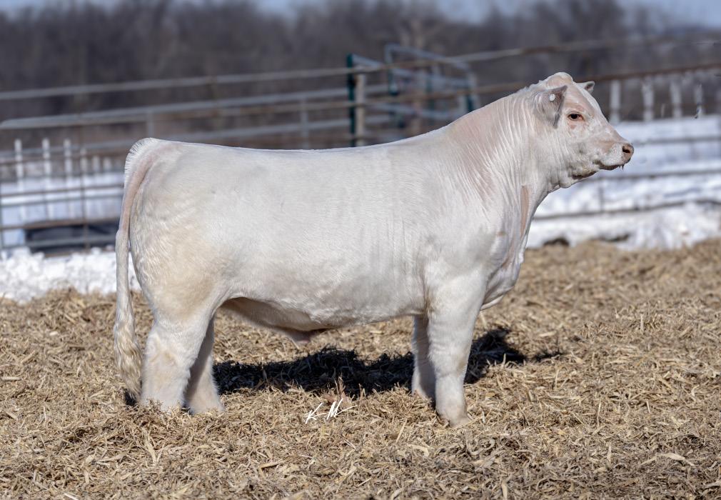 Wright Charolais kept a semen interest in this up and coming young bull when he sold in the March 2023 WC Bull Sale for $18,000 to Brian Ediger. His ideal pattern, type and profile along with his overwhelming IMF marbling ratio of 124 ranked him the #1 yearling bull in his contemporary group of 24 bull mates. Today he ranks in the top 1% of the breed for MARB EPD, top 2% for MILK, top 7% for MTL, top 8% for Calving Ease, top 15% for BW, top 5% for Carcass Weight and top 5% for TSI.