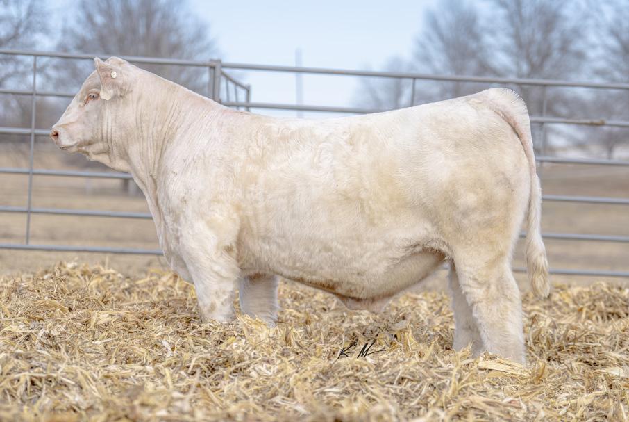 Maternal brothers to this bull have sold to some of the best firms in the business, including WC Exclamation 3259 to Stout Charolais in South Dakota. Not only is this son a big performer, but the dam of this bull has produced WC six total sons that have an average AWW of 851.2 lbs for an average ratio of 110.5!!!!!! He ranks in the top 15% for REA & MARB and top 8% for WW and TSI.