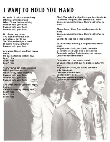 Oh si, Voy a decirte algo Creo que lo entenderรกs Cuando te lo diga Quiero estrechar tu mano, Quiero estrechar tu mano, Quiero estrechar tu mano Oh por favor, dime Que me dajaras cojer tu mano Quiero estrechar tu mano, Quiero estrechar tu mano Cuando te toco me siento tan feliz Es una sensacion tal que no puedoocultar mi amor No puedo ocultarlo, no puedo ocultarlo Si, tu tienes eso Creo que lo ententeras Cuando te lo diga, Quiero estrechar tu mano Quiero estrechar tu mano Cuando te toco me siento tan feliz Es una sensacion tal que no puedo ocultar mi amor No puedo ocultarlo, no puedo ocultarlo si tu tienes eso Creo que lo entenderas Cuando siento eso Quiero estrechar tu mano Quiero estrechar tu mano