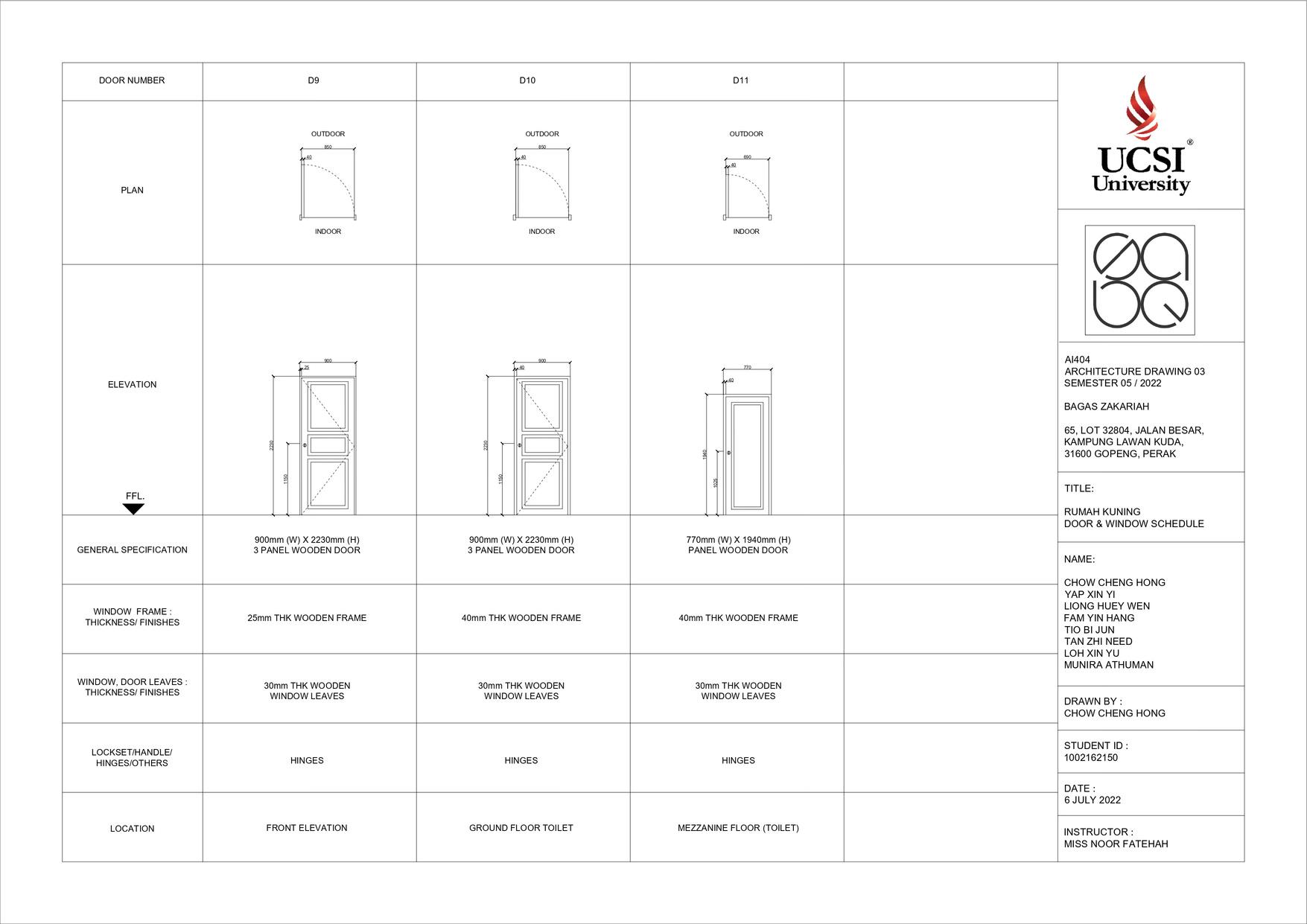 TECHNICAL DRAWING : WINDOW AND DOOR SCHEDULE 3