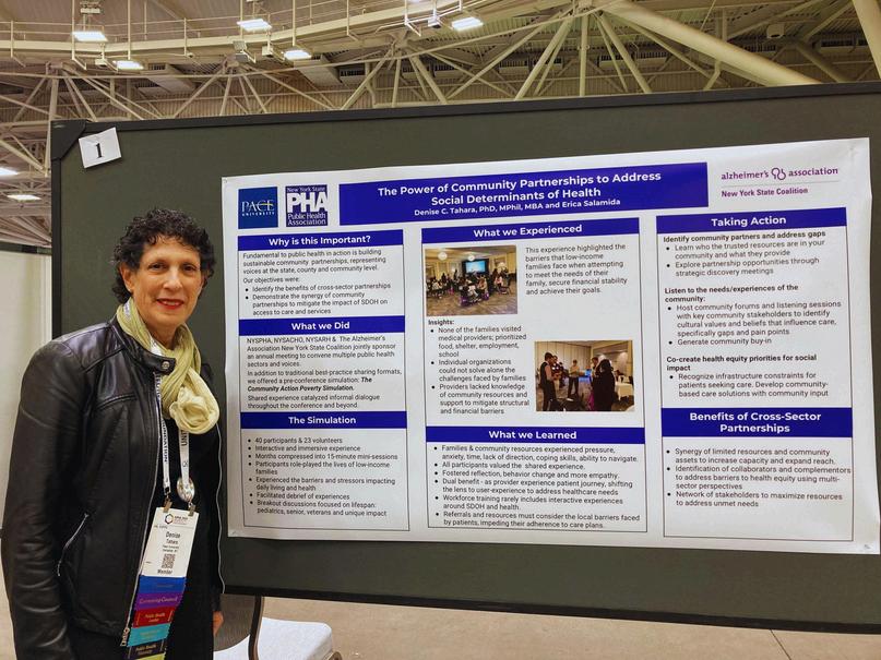 Denise Tahara, PhD, MPhil, MBA is the immediate past-president and a board member of the New York State Public Health Association (NYSPHA). Dr. Tahara collaborates with community-based organizations to collect data-driven evidence to improve care quality and innovate the design and delivery of userfocused experiences. She has presented at conferences locally, nationally, and internationally, and has published numerous articles on the strategic redesign of healthcare systems. She recently submitted her poster, The power of community partners to address social determinants of health at the APHA 2024 Annual Meeting and Expo.