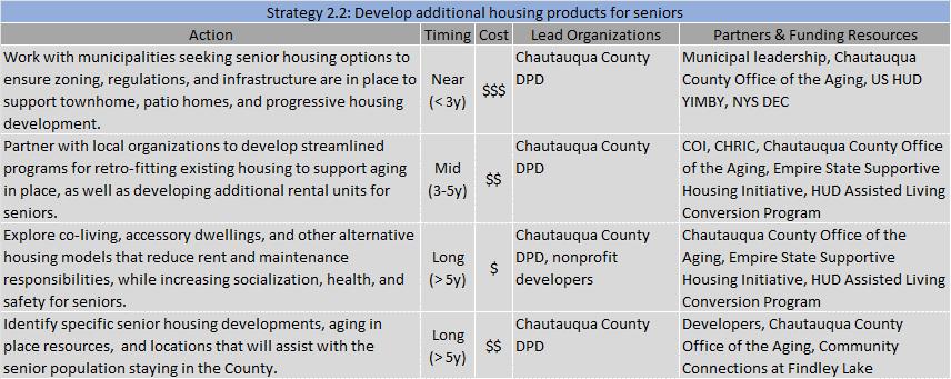 The first chapter of this study provides implementation strategies and recommendations for CCPEG, Chautauqua County, its municipalities, and other partners to address current and future housing needs. These strategies are based on a thorough analysis, outlined in the remaining chapters, of the existing housing stock and the needs of current and future residents. An understanding of market conditions and communities’ priorities provides grounding for the strategies, which are organized into four overarching goal areas: 1) improving housing quality and diversity, 2) addressing the housing needs of special populations, 3) affordability for the workforce, and 4) enhancing land management tools and resources to improve housing quality and access. Not every strategy will be the right solution for every municipality in Chautauqua County. Community nuances will need to be considered as local leaders facilitate the right strategies in their communities.