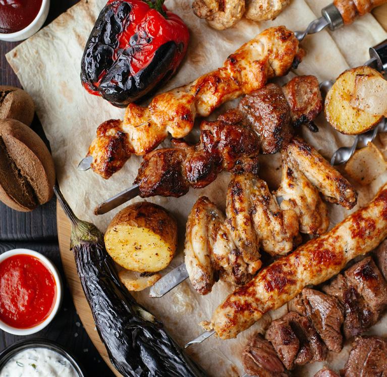 Lamb souvlaki with tzatziki GF, EF