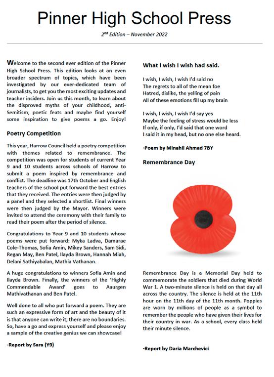 The English department launched a Newspaper Club for the Heads Challenge. We have now published the 3rd edition of The Pinner Press!