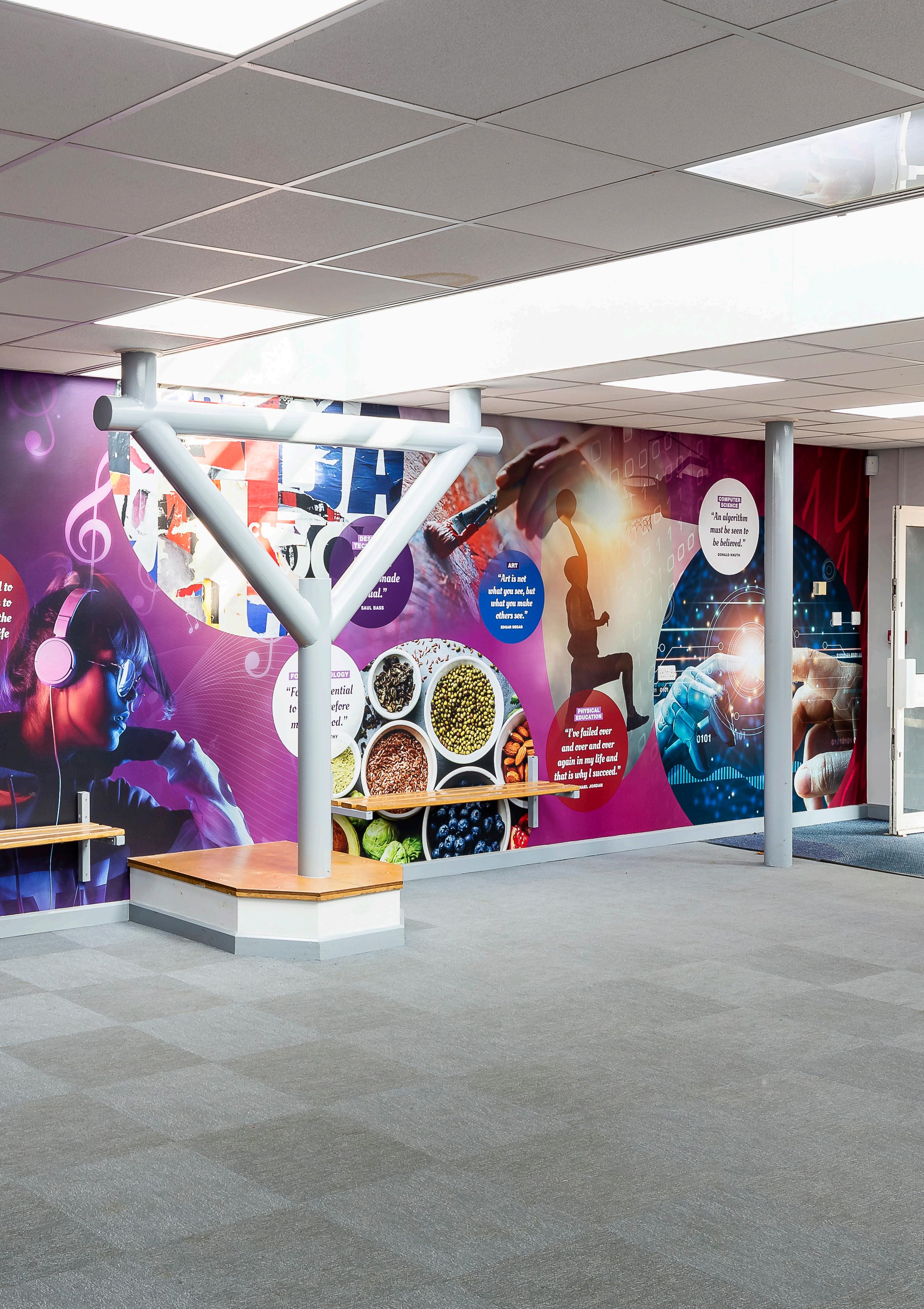 Bespoke design makes all the difference. Every Wall Art project is designed in-house by a team of highly experienced designers, bespoke to the school’s specific requirements, objectives, curriculum and budget.